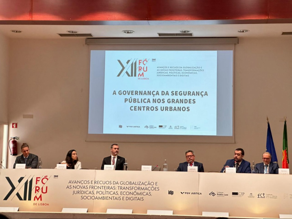 O acordo foi celebrado após o painel sobre Governança da Segurança Pública nos grandes centros urbanos, durante o primeiro dia do XII Fórum de Lisboa, no Auditório da Faculdade de Direito da Universidade de Lisboa.