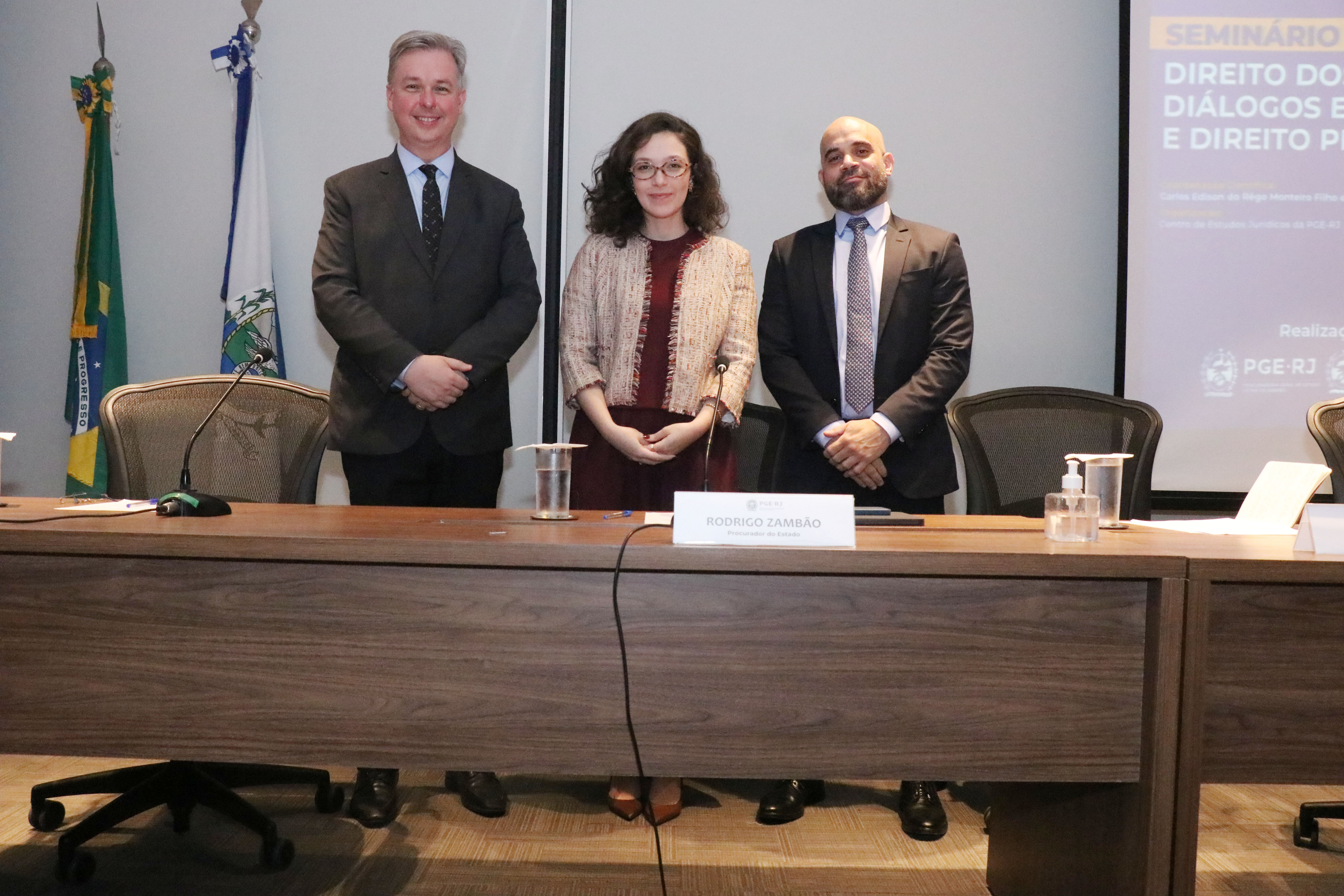 A Procuradoria Geral do Estado do Rio de Janeiro realizou nesta segunda-feira (1°), no Auditório Machado Guimarães, o seminário “Direito dos Contratos: Diálogos entre Direito Público e Direito Privado”. O encontro teve coordenação científica do Procurador-Chefe e do Procurador-Assistente do Centro de Estudos Jurídicos (CEJUR) da PGE-RJ, Carlos Edison do Rêgo Monteiro Filho e Rodrigo Távora, respectivamente.
