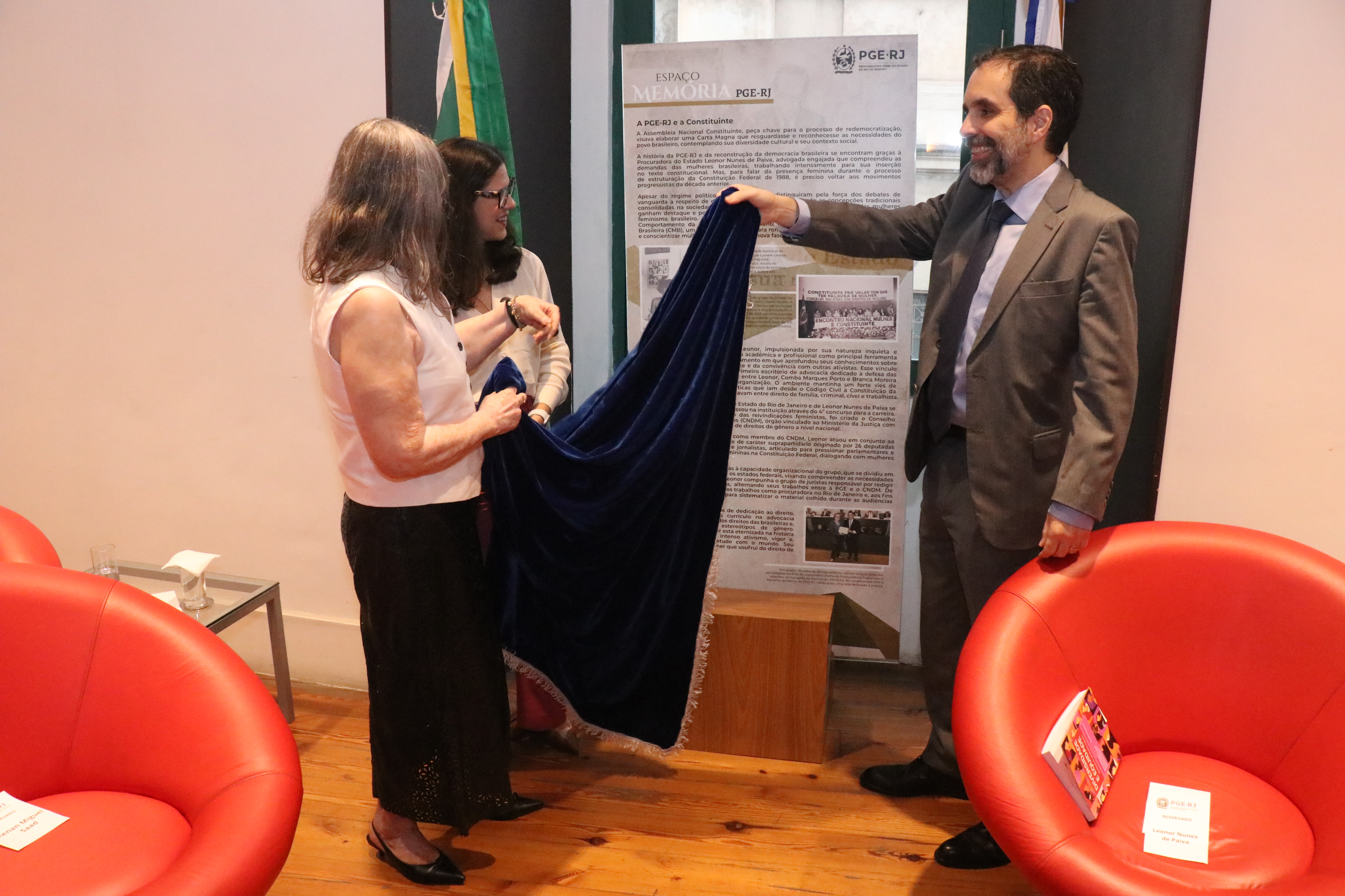O evento celebrou ainda o descerramento do novo totem da Sala Dona Maria, apresentado pelo Diretor do CEJUR, Procurador Carlos Edison do Rêgo Monteiro Filho, e pela Procuradora Fernanda Mainier, Presidente da Comissão de Promoção à Igualdade de Gênero. O painel integra a série de conteúdos do Espaço Memória PGE-RJ e narra o papel da Casa na Constituinte e no fortalecimento da democracia, destacando figuras que contribuíram para a história da Procuradoria — entre elas, naturalmente, a própria Leonor.