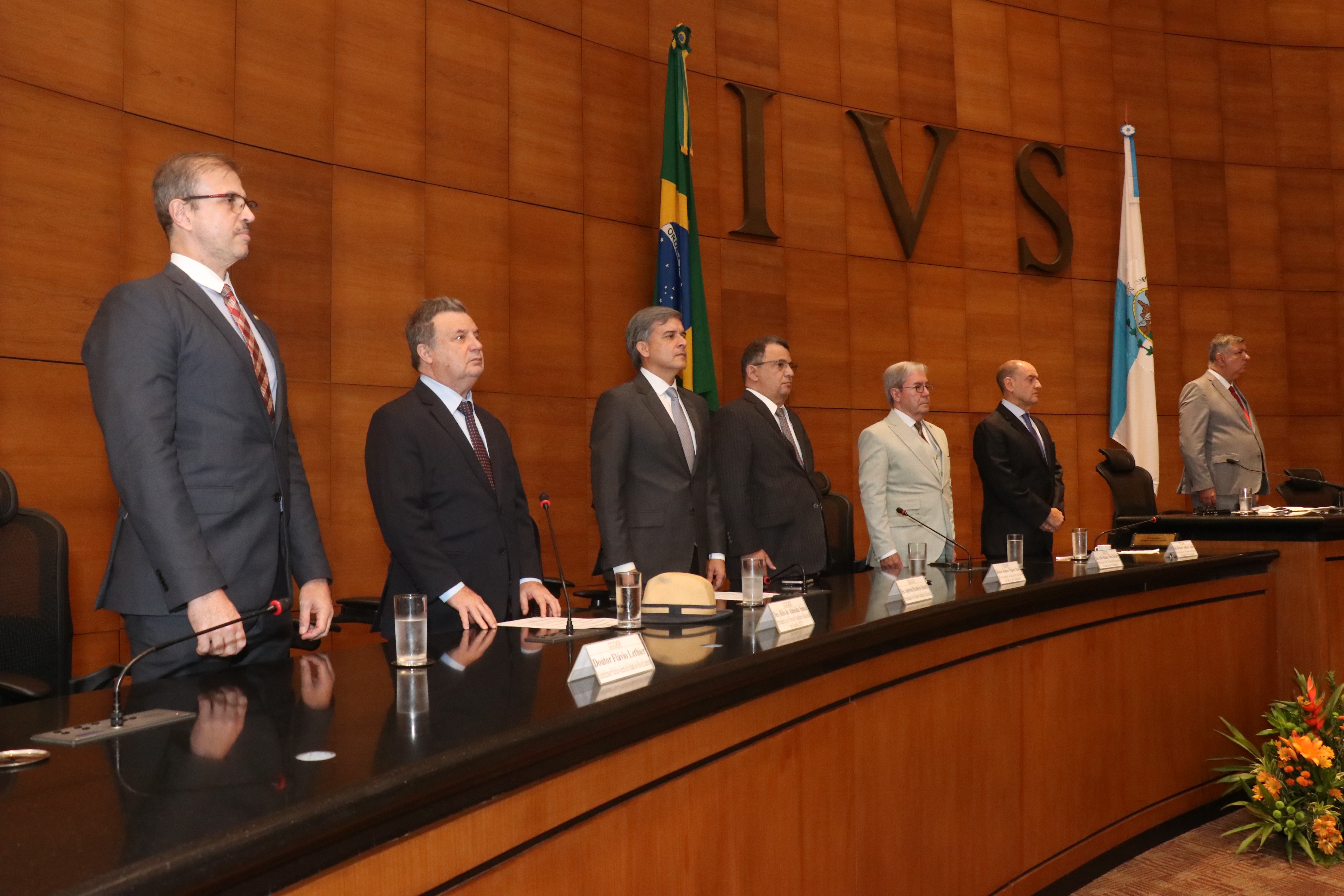 O Procurador-Geral do Estado, Renan Saad, participou nesta terça-feira (10), no Plenário Ministro Waldemar Zveiter, no Tribunal de Justiça do Rio de Janeiro (TJRJ), da cerimônia de posse da nova diretoria do Colégio de Corregedoras e Corregedores da Justiça do Brasil (CCOGE). Na ocasião, também foram empossados os novos integrantes do Fórum Fundiário Nacional (FFN).