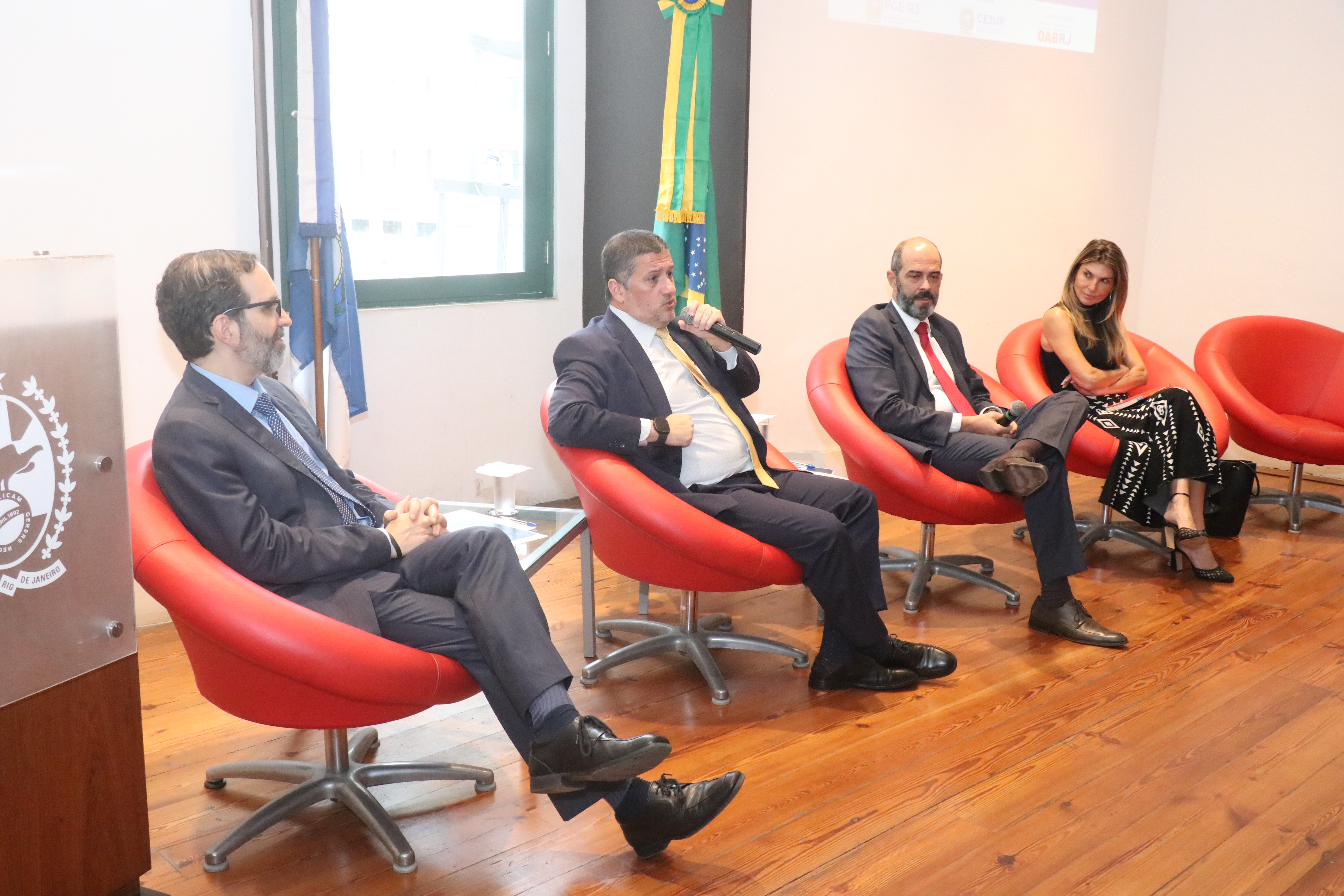 O terceiro painel — "Novo Código de Defesa dos Contribuintes: O que Muda?" — foi presidido pelo Procurador Rafael Pepe. Participaram como palestrantes Fernanda Parisi, Diretora da Associação Brasileira do Direito Financeiro (ABDF); Gilberto Fraga, Vice-Presidente da CEAT/OAB-RJ; e Natália de Souza, Assessora Jurídica-Chefe da SEFAZ-RJ e integrante da CEAT/OAB-RJ.