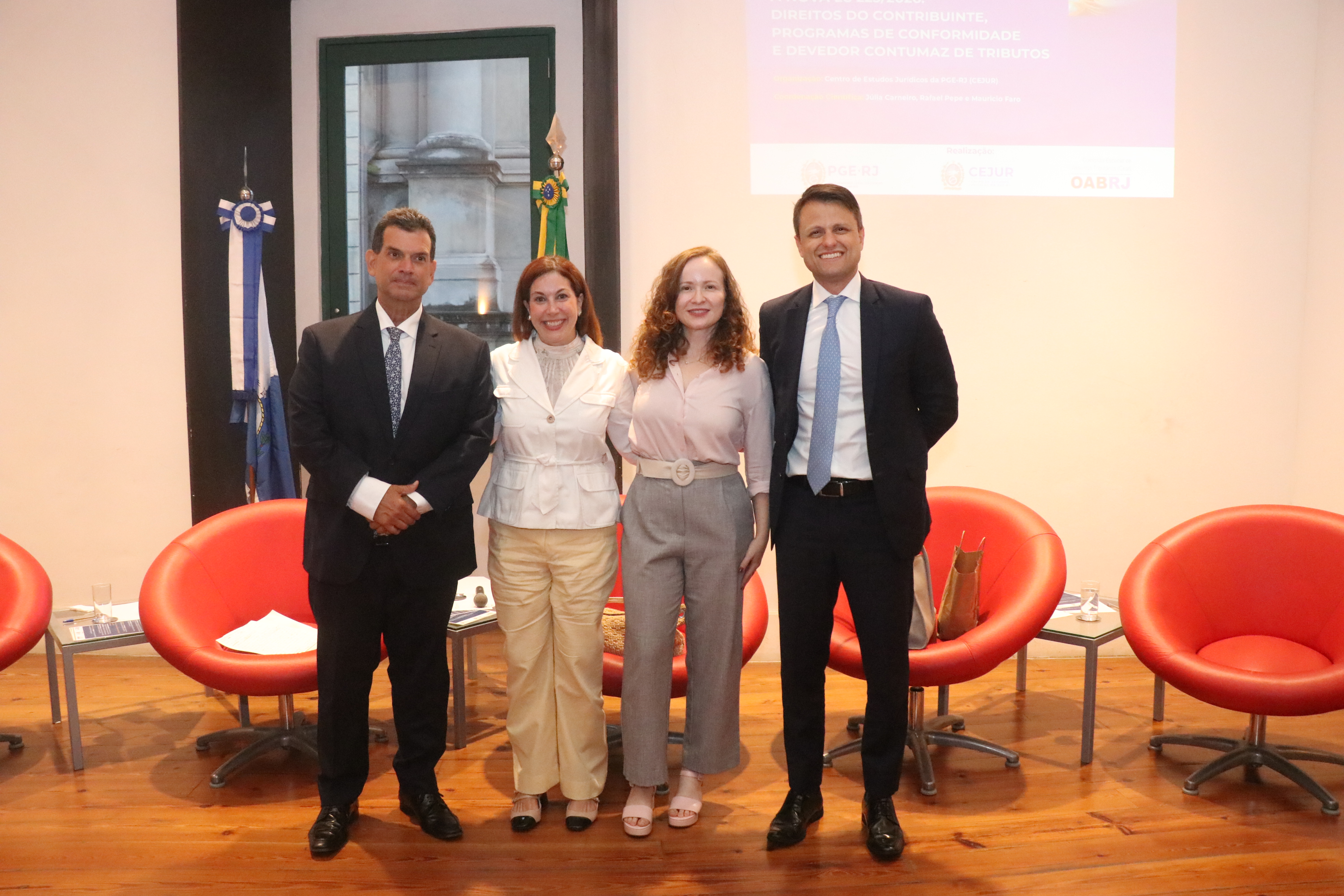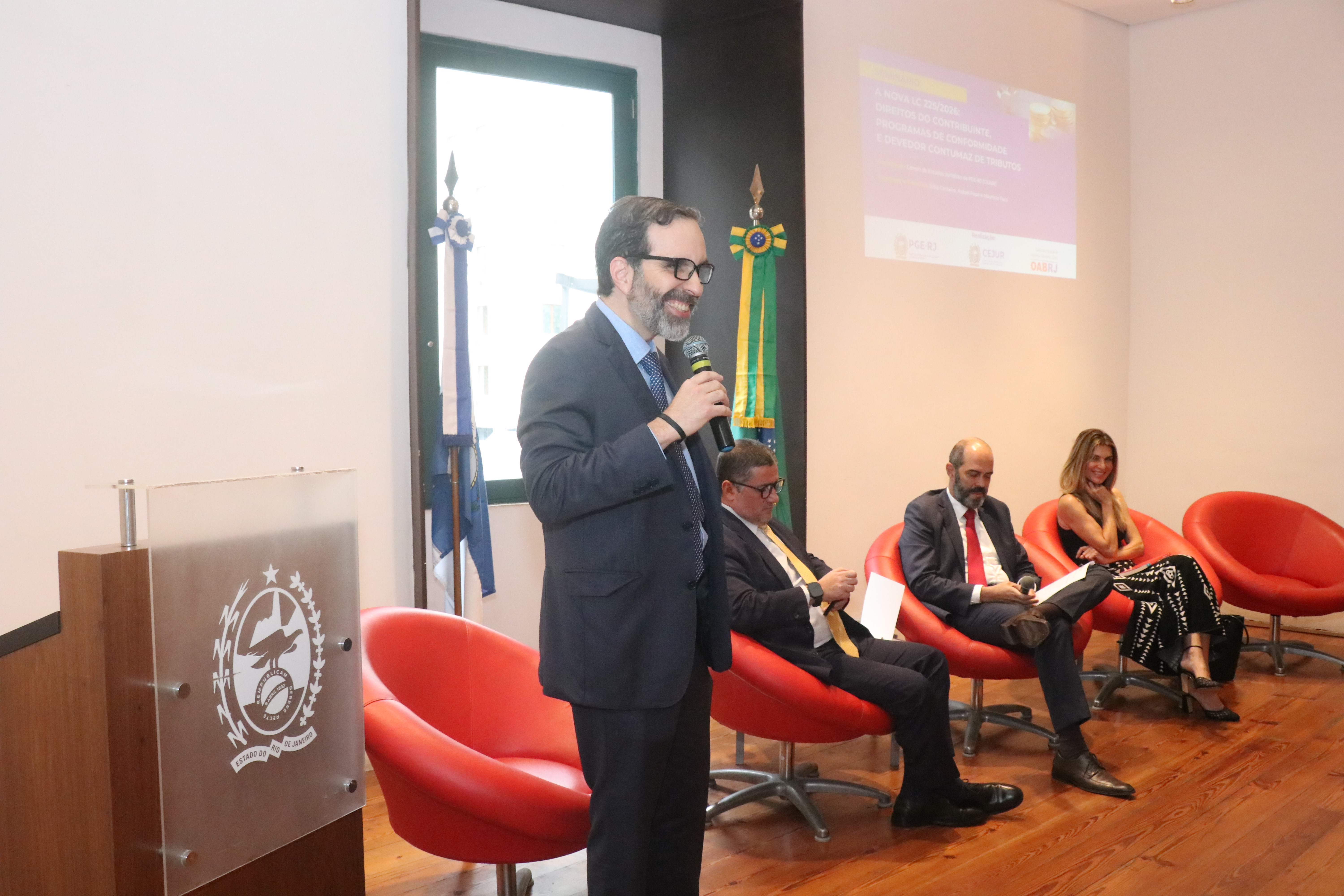 O Centro Cultural PGE-RJ recebeu nesta quarta-feira (4) o seminário "A Nova LC 225/2026: Direito do Contribuinte, Programas de Conformidade e Devedor Contumaz de Tributos". O evento, promovido pelo Centro de Estudos Jurídicos (CEJUR), teve coordenação científica dos Procuradores Júlia Carneiro e Rafael Pepe, e do Presidente da Comissão de Assuntos Tributários da OAB-RJ (CEAT/OAB-RJ), Maurício Faro.