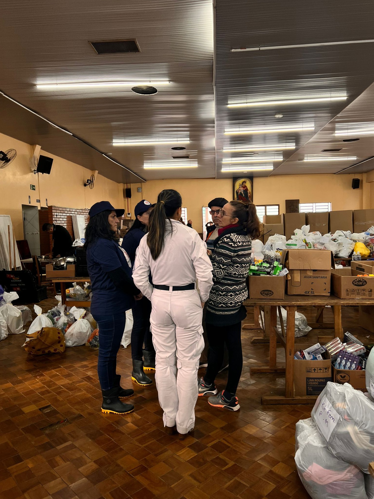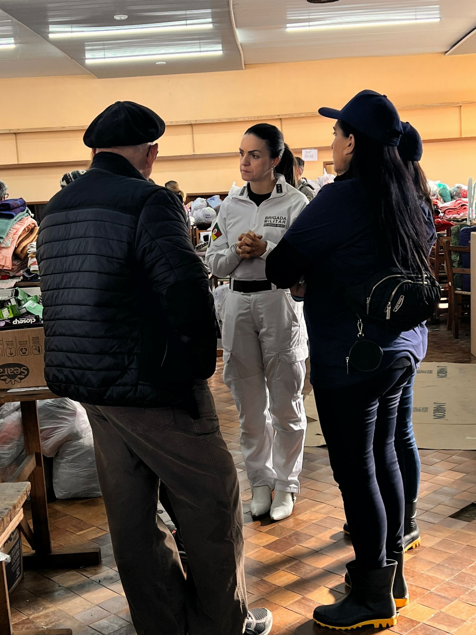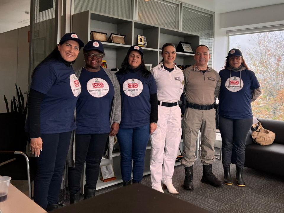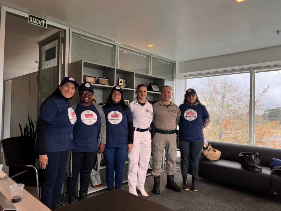 As psicólogas Cleusmar da Silva Bastos Almeida e Ana Cláudia de Souza Deschamps, Ana Lúcia Araújo, assessora do Núcleo de Saúde Mental, e Daniele Amar Büttner, coordenadora do Núcleo de Saúde Mental, embarcaram rumo ao Rio Grande do Sul no dia 12 de maio. Em meio ao cenário de devastação, elas percorreram abrigos em várias cidades, como Caxias do Sul, Santa Tereza, Bento Gonçalves (no distrito de Faria Lemos, onde ficam localizadas importantes vinícolas), Roca Sales, Colinas, Imigrante, Farroupilha, Cotiporã, Pinto Bandeira, Antônio Prado, Arroio do Meio, atendendo a mais de 200 pessoas, entre civis e militares.