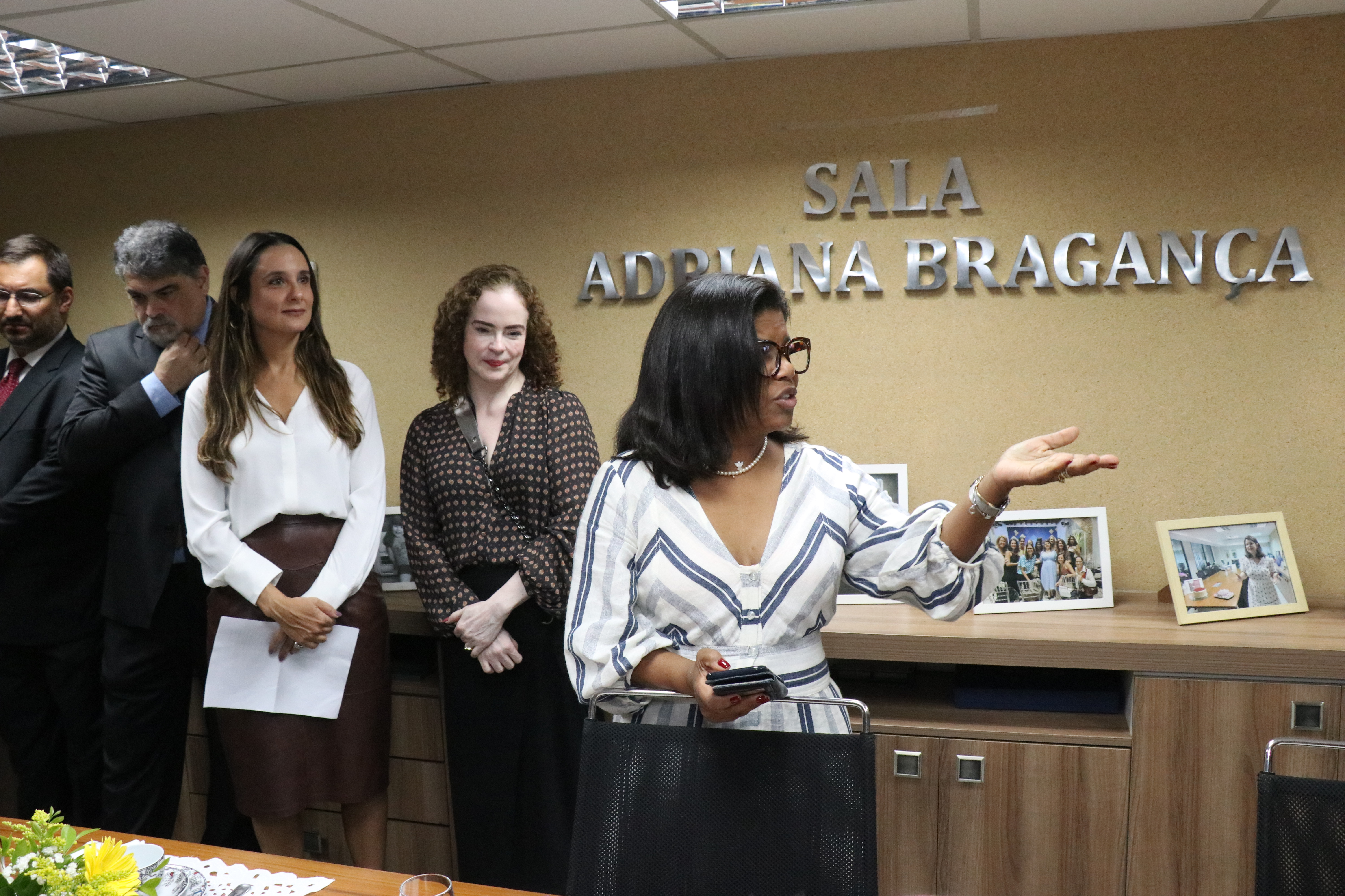 Durante a inauguração, o Procurador-Geral Renan Saad destacou a importância de Adriana Bragança para todos, não só como a brilhante profissional que foi, assim como sua figura humana, que era um exemplo e orgulho para familiares, amigos e colegas de profissão. Ele também agradeceu à APERJ, na figura da Presidente Cristina Francesconi, pela sensibilidade de eternizar a memória e a história da Procuradora.