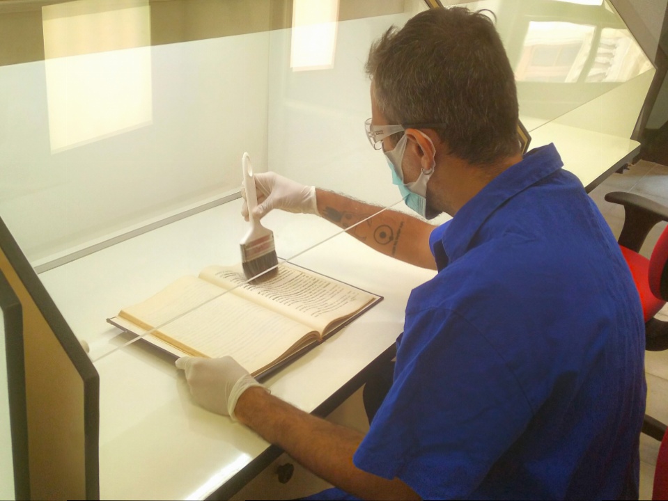A preocupação da PGE com a preservação do patrimônio bibliográfico jurídico da Casa, fez com que a direção da biblioteca instalasse, em 2023, uma sala de higienização e conservação do acervo com o uso de três mesas com sistema de sucção de sujidades. O monitoramento e o controle dos índices de umidade e temperatura dos ambientes de guarda é outra das preocupações dos servidores da PGE.