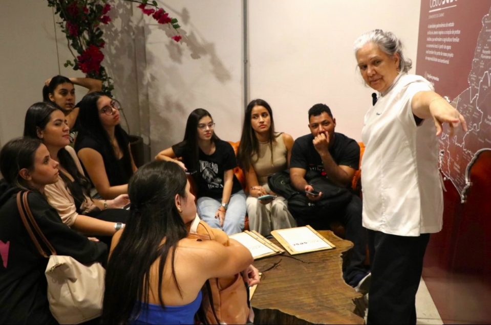 Na conversa com a turma, Teresa ressaltou também que a proposta do Bistrô Sesc Convento do Carmo privilegia no seu cardápio produtos que fazem parte da receita local da cultura regional e também a valorização da economia local.