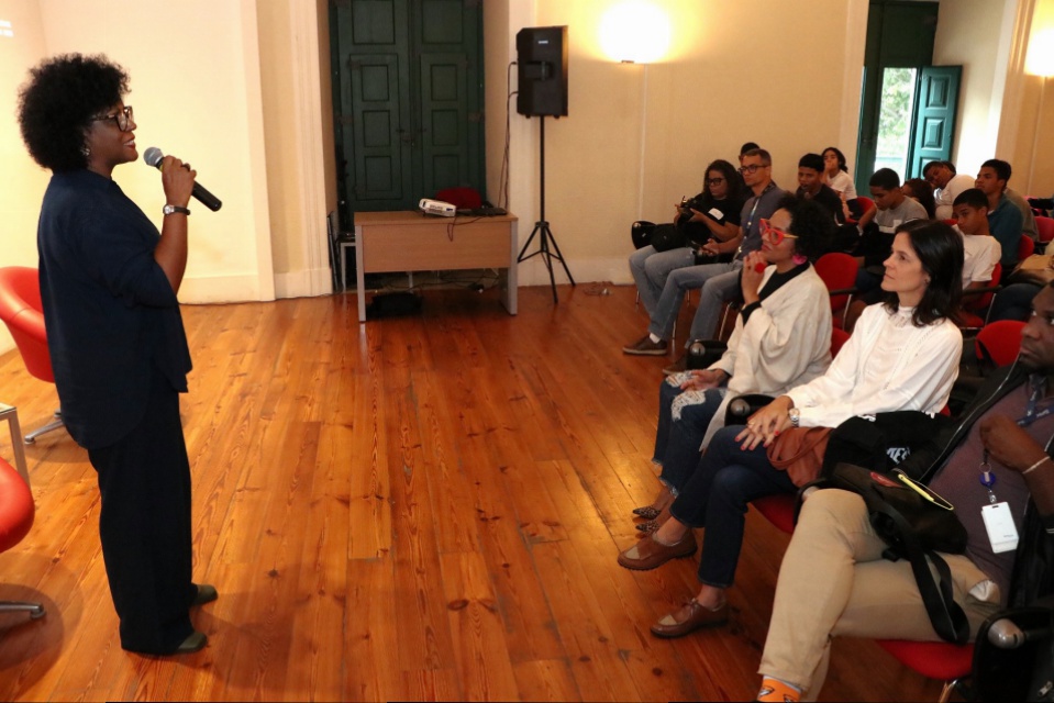 A Servidora da PGE-RJ Isaura Santana, da Comissão Especial de Combate ao Racismo Estrutural e Institucional da Procuradoria, saudou o Sesc RJ pela parceria com a PGE-RJ nesse projeto e destacou a participação da Curadora do Centro Cultural PGE-RJ, Cecília Fortes na parceria da Procuradoria com o Sesc.