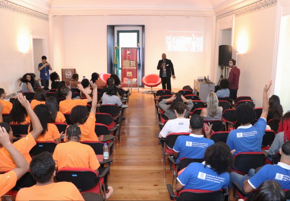 Falando para os bolsistas da Fundação da Infância e Adolescência que atuam na Procuradoria Geral do Estado e para as alunas do Portal Futuro do Senac Madureira, o professor Elbert Agostinho, fundador do Observatório Carioca de Histórias em Quadrinhos e organizador do livro “Negritudes, Poderes e Heroísmos", apresentou os personagens negros em animes e mangás, trazendo a reflexão sobre representação e representatividade.