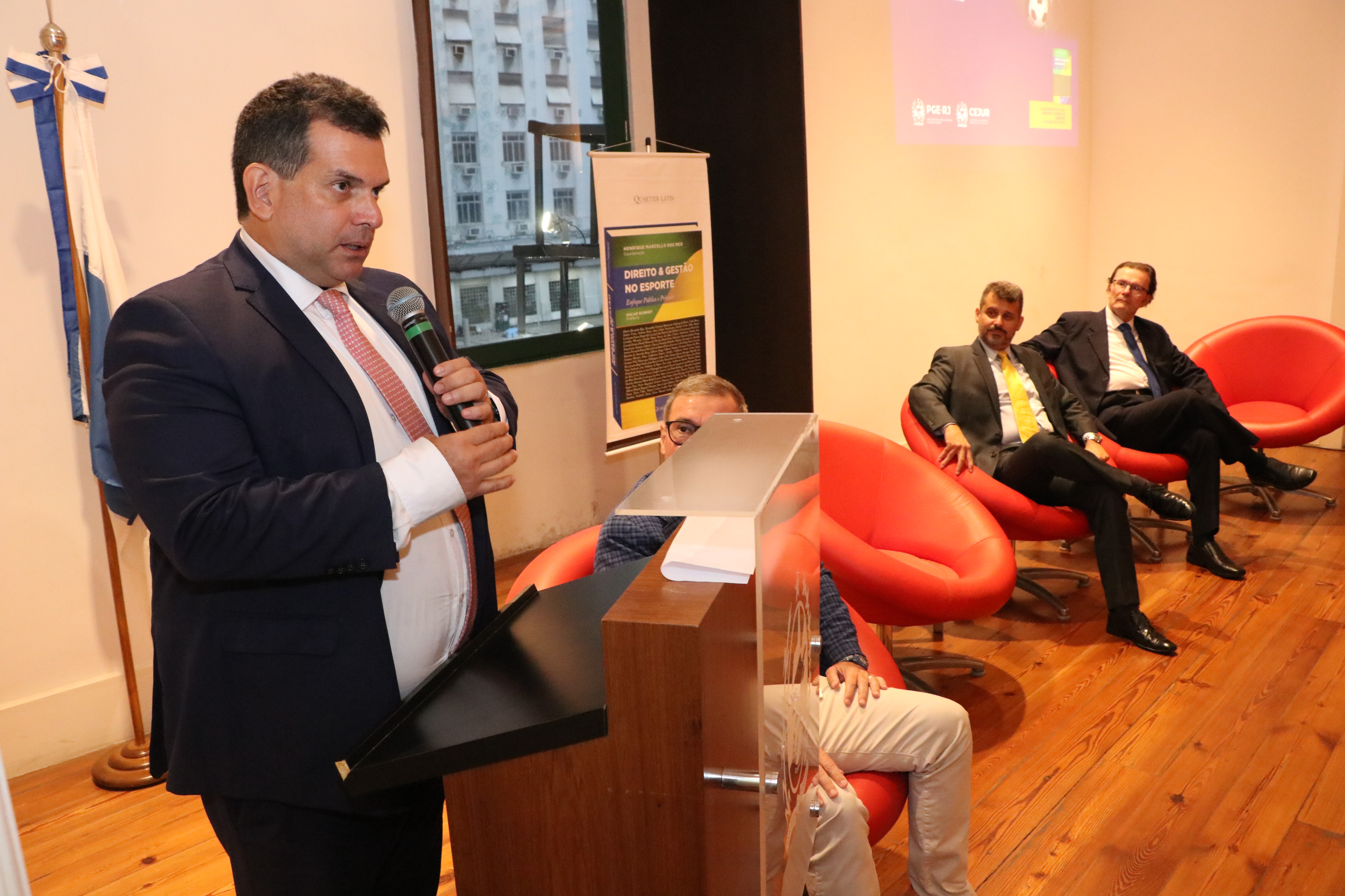 "A Procuradoria Geral do Estado mais uma vez tem a satisfação de abrir suas portas para receber um seminário que aborda um tema tão atual e de enorme relevância e amplitude. O esporte, na sociedade contemporânea, compreende inúmeros fatores como cultura, saúde, lazer. E, por outro lado, também abrange temas como relações contratuais, relações tributárias, trabalhistas, administrativas e, não raro, até envolvendo questões internacionais. Nesse cenário, sobressai a importância da gestão esportiva no sentido amplo e, obviamente, os aspectos jurídicos ligados a isso. Daí a importância de se discutir e debater estes assuntos", assinalou o Procurador-Chefe do CEJUR.