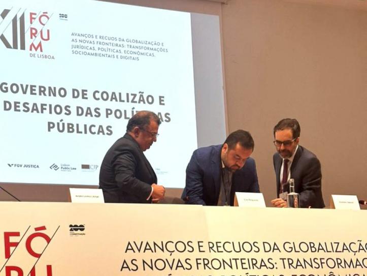 O acordo foi celebrado após o painel sobre Governança da Segurança Pública nos grandes centros urbanos, durante o primeiro dia do XII Fórum de Lisboa, no Auditório da Faculdade de Direito da Universidade de Lisboa.