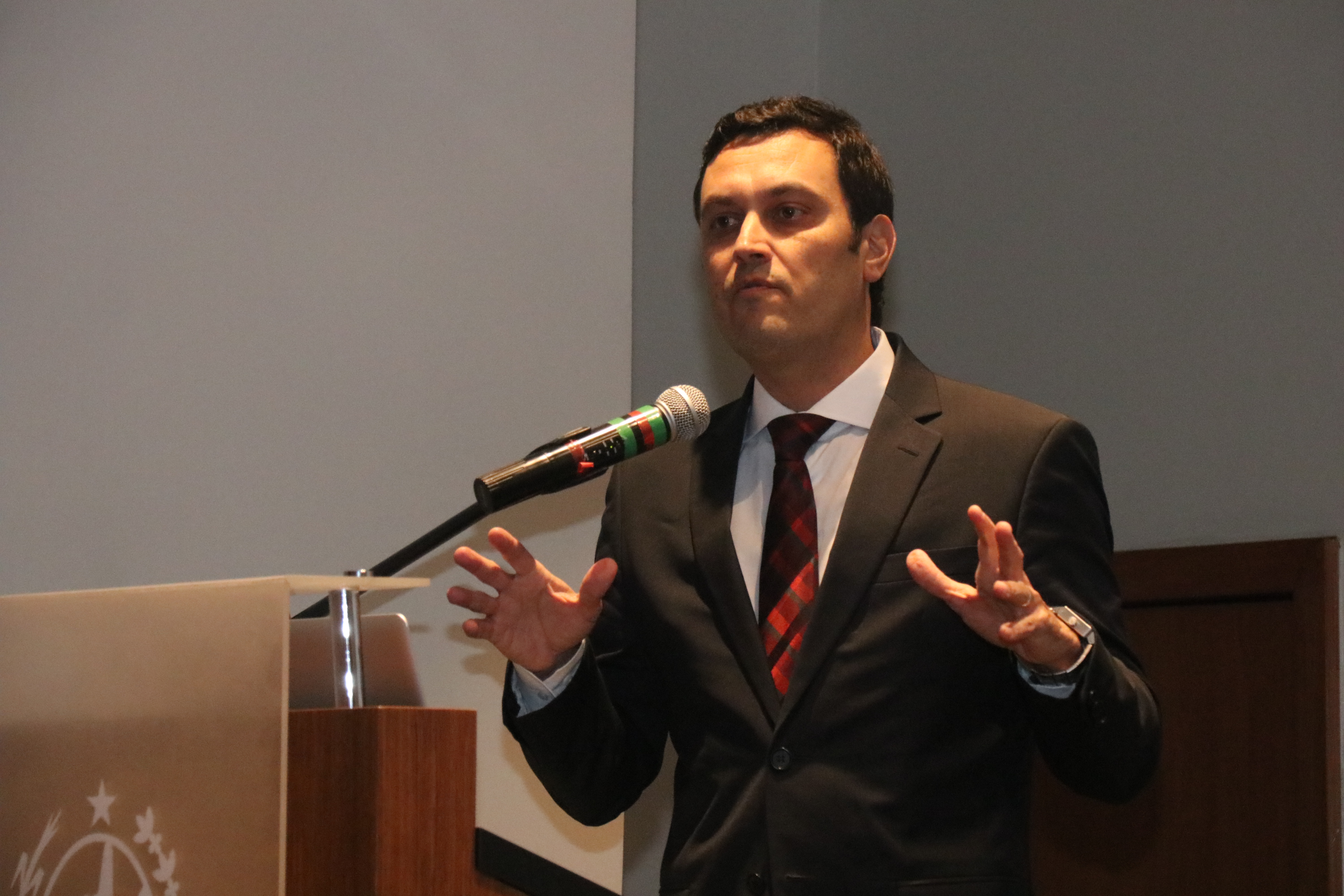Antes da palestra, o Ministro do STJ foi saudado pelo Procurador-Geral do Estado do Rio de Janeiro, Renan Saad. "É com muita honra que a gente dá início à última palestra desse magnífico Congresso de Direito Ambiental com a presença, ilustre e honrosa para a PGE-RJ, do ministro Herman Benjamin", destacou.