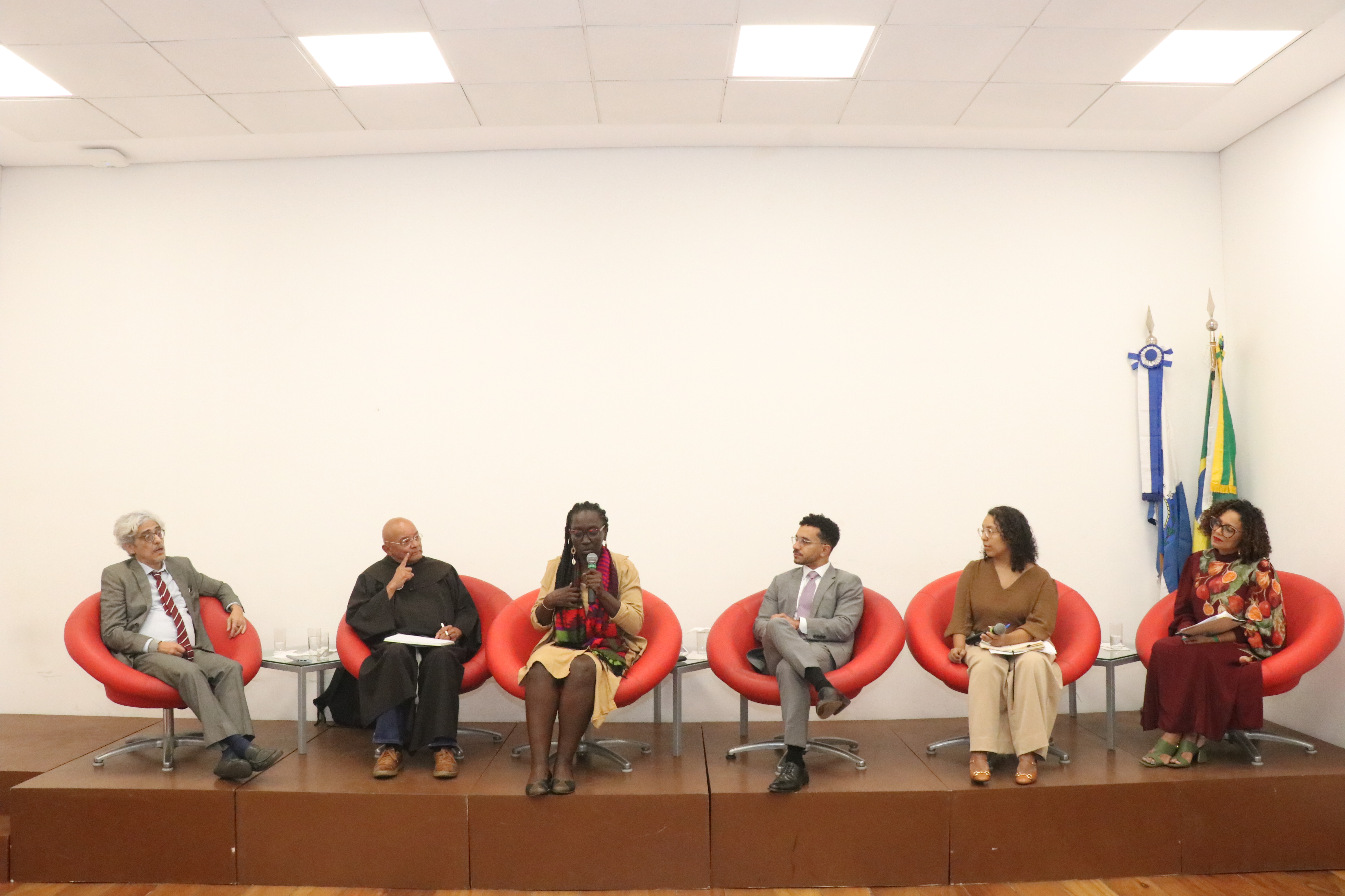 Após a abertura, a mesa temática “Cotas Raciais: Impactos, Desafios e Perspectivas” reuniu como palestrantes o Fundador e Diretor-Executivo da Educafro, Frei David Santos; a Professora da UERJ, Patrícia Santos; o Professor da Faculdade de Direito da UERJ e da FGV Direito Rio, Wallace Corbo; e o Procurador Augusto Werneck.