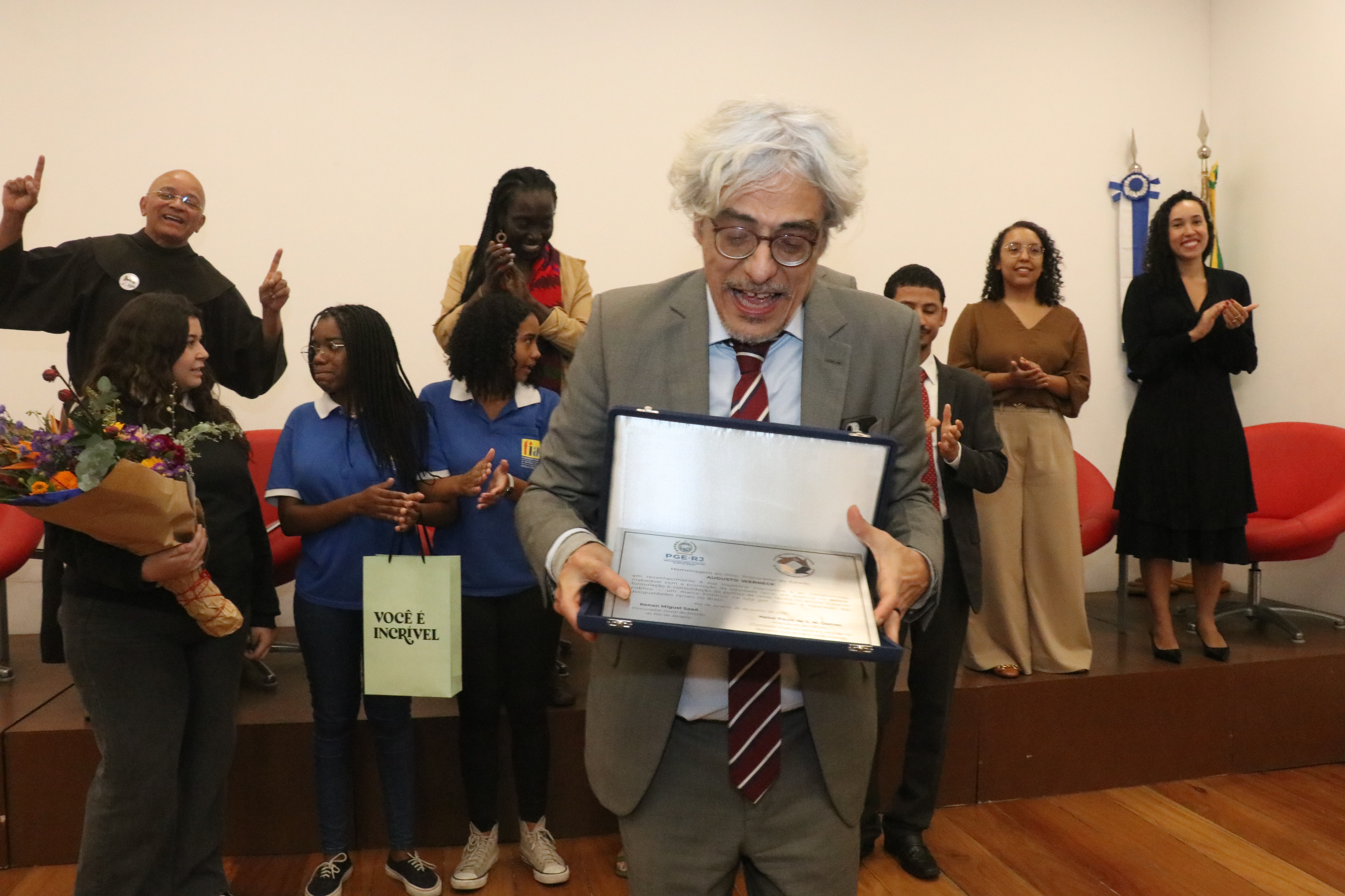 A Procuradoria Geral do Estado do Rio de Janeiro realizou nesta quinta-feira (26) o seminário “25 Anos da Primeira Lei de Cotas no Ensino Superior Público: Pioneirismo do ERJ, Atuação da PGE-RJ, Avanços e Desafios na Política de Ações Afirmativas”. Ao fim do evento, houve uma homenagem ao Procurador Augusto Werneck.