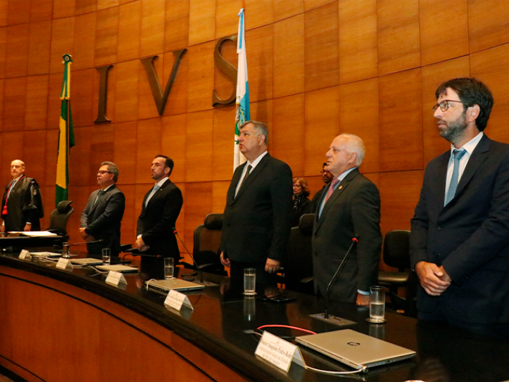 "Prestar atenção, analisar e atuar com eficiência, seriedade e discrição: é o que esperamos de vocês que, hoje, ingressam na Magistratura. O Judiciário se coloca firme no movimento pela democracia e, ao se portar com firmeza, vem cumprindo sua missão. Estamos aqui em uma posse representativa deste Poder, que simboliza o ideal de liberdade e a força pela democracia e pelos direitos", disse o Desembargador Ricardo Couto.