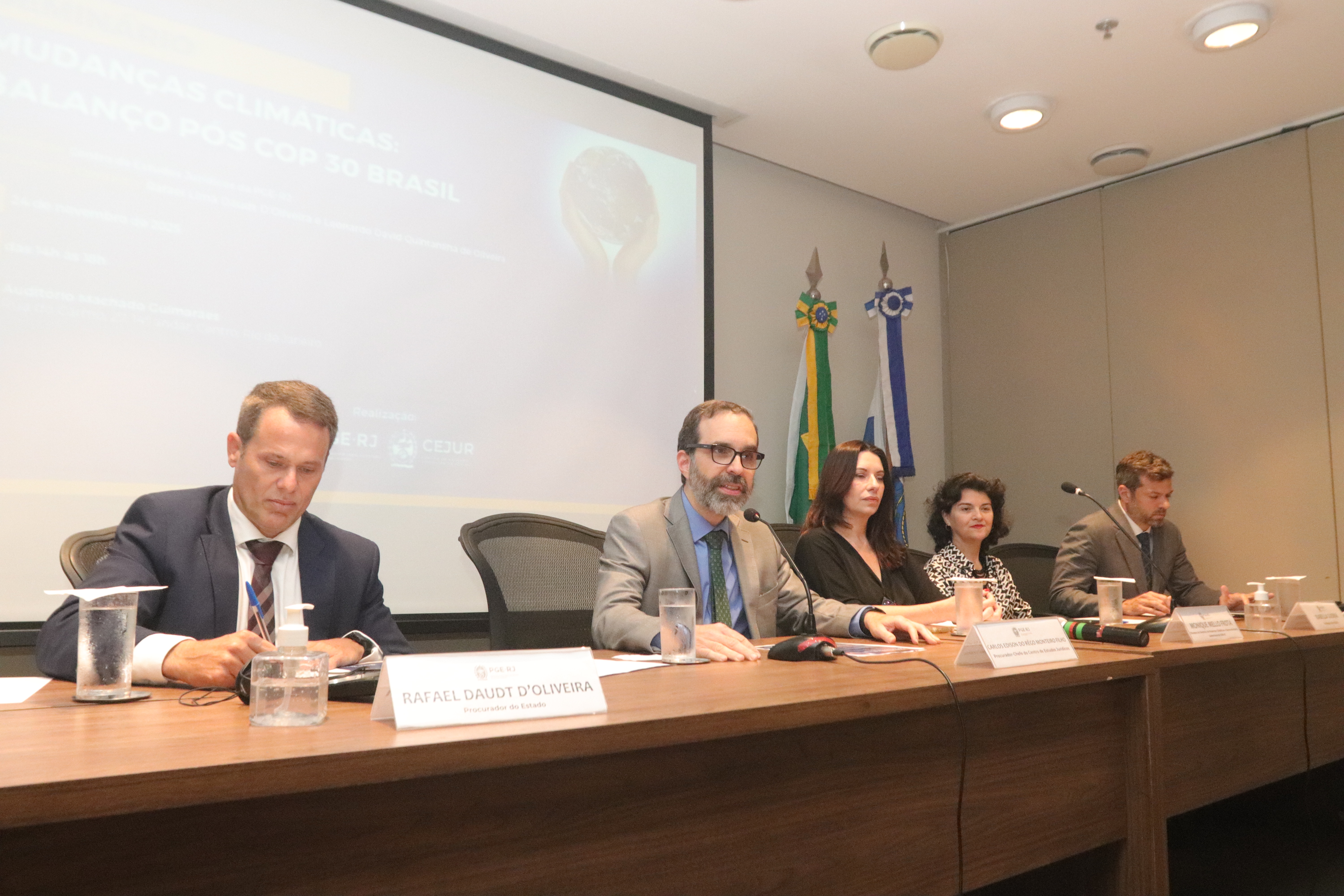 A abertura do seminário foi feita pelo Procurador-Chefe do Centro de Estudos Jurídicos (CEJUR), Carlos Edison do Rêgo Monteiro Filho, que destacou que o debate sobre as mudanças climáticas é "extremamente oportuno". Ele lembrou ainda que o tema foi recentemente abordado no III Congresso Internacional da ESAP/PGE-RJ de Direito Ambiental, realizado em agosto.