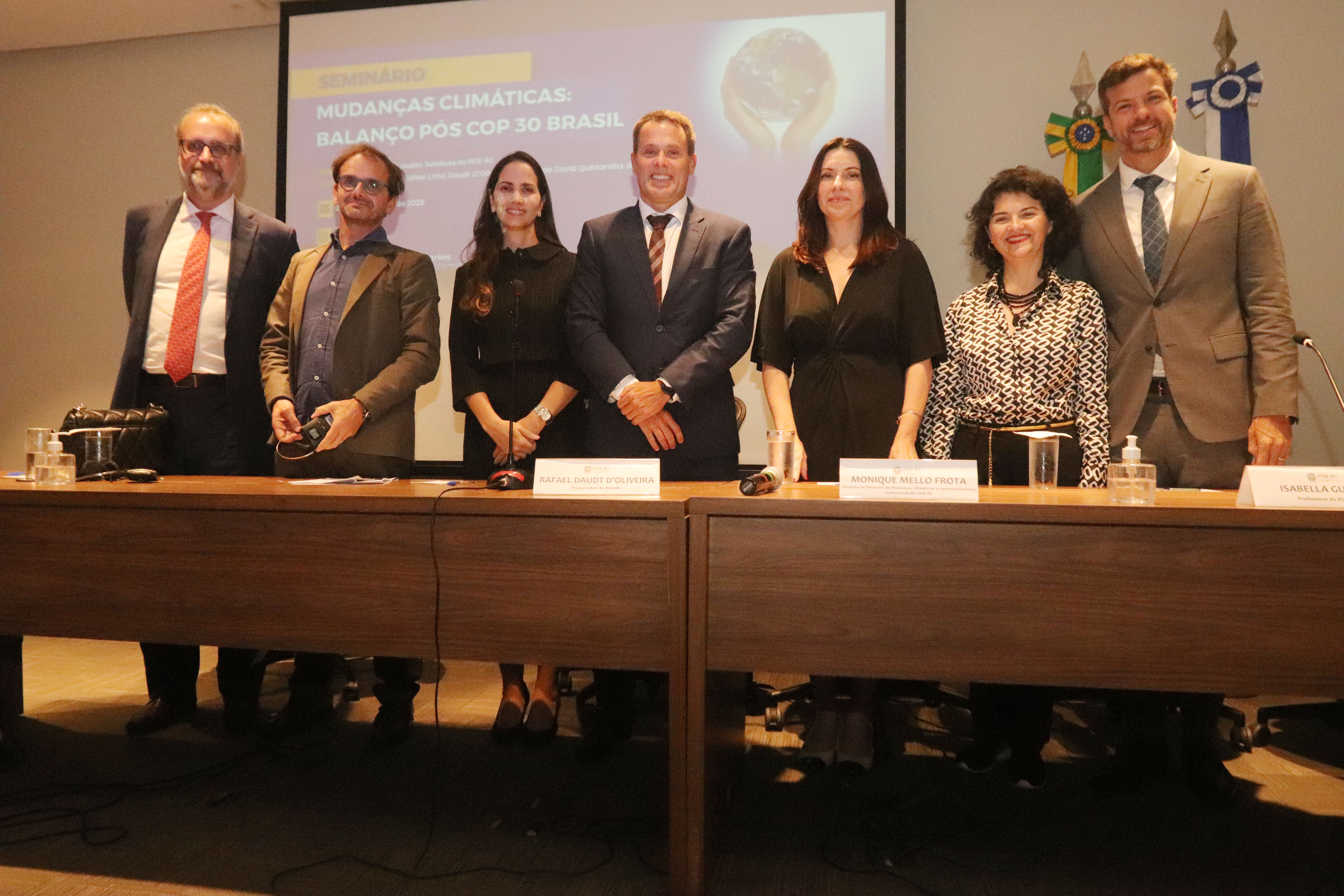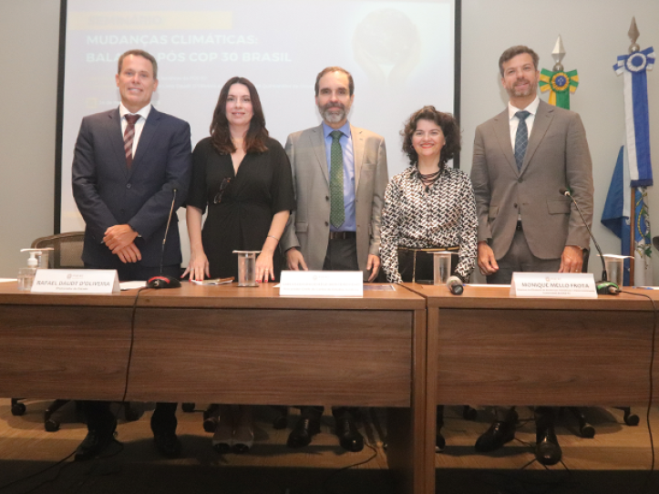A Procuradoria Geral do Estado do Rio de Janeiro promoveu nesta segunda-feira (24), no Auditório Machado Guimarães, o seminário “Mudanças Climáticas: Balanço Pós COP 30 Brasil”. Tendo como coordenadores científicos os Procuradores Rafael Lima Daudt D’Oliveira e Leonardo David Quintanilha de Oliveira, o evento reuniu autoridades e especialistas em Direito Ambiental.