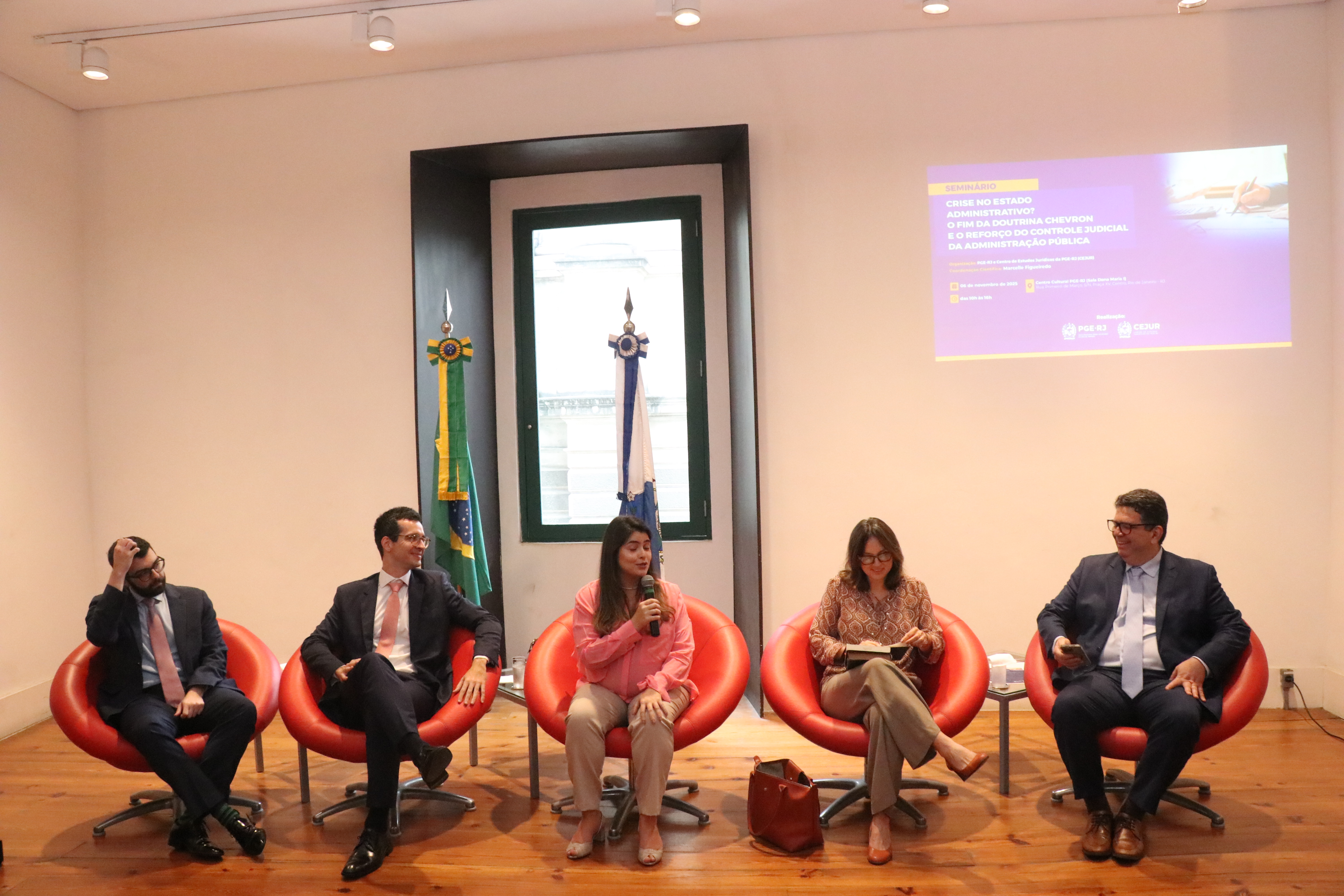 A Procuradoria Geral do Estado do Rio de Janeiro realizou nesta quinta-feira (6), no Centro Cultural PGE-RJ, o seminário “Crise no Estado Administrativo? O Fim da Doutrina Chevron e o Reforço do Controle Judicial da Administração Pública”. O encontro teve coordenação científica da Procuradora Marcelle Figueiredo e discutiu diversos aspectos do Caso Chevron, decidido, em 1984, pela Suprema Corte dos Estados Unidos.