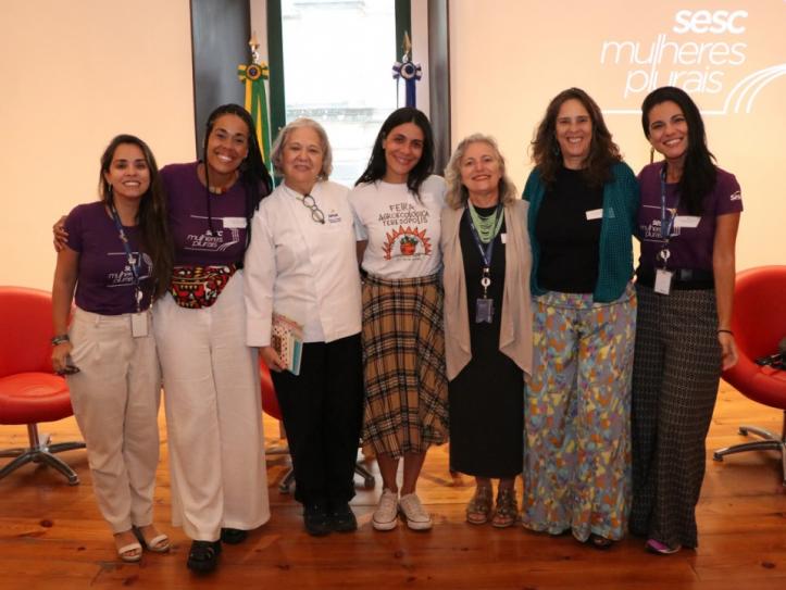 A conversa transcorreu por temas como cozinha afetiva, alimentação orgânica e resistência feminina no ramo da agricultura. O encontro foi mediado por Helena Oliveira, especialista em educação ambiental e patrimônio cultural pela Universidade Federal de Goiás e analista de projetos socioambientais do Sesc Teresópolis.