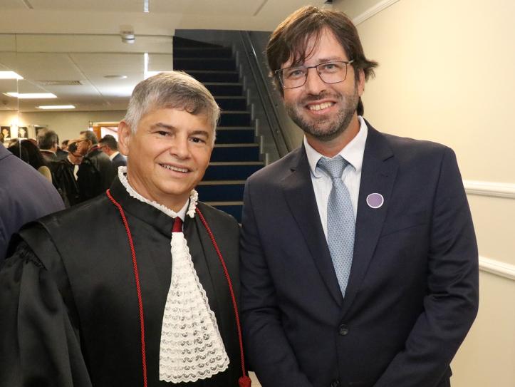 O Subprocurador-Geral do Estado do Rio de Janeiro, Joaquim Rohr, participou nesta segunda-feira (28) da sessão solene em homenagem à posse do Desembargador Rogério Tobias de Carvalho no Tribunal Regional Federal da 2ª Região (TRF2). O Magistrado foi promovido pelo critério de antiguidade e passa a ocupar a vaga de José Antônio Neiva, aposentado no ano passado. A solenidade aconteceu no Plenário da Corte.