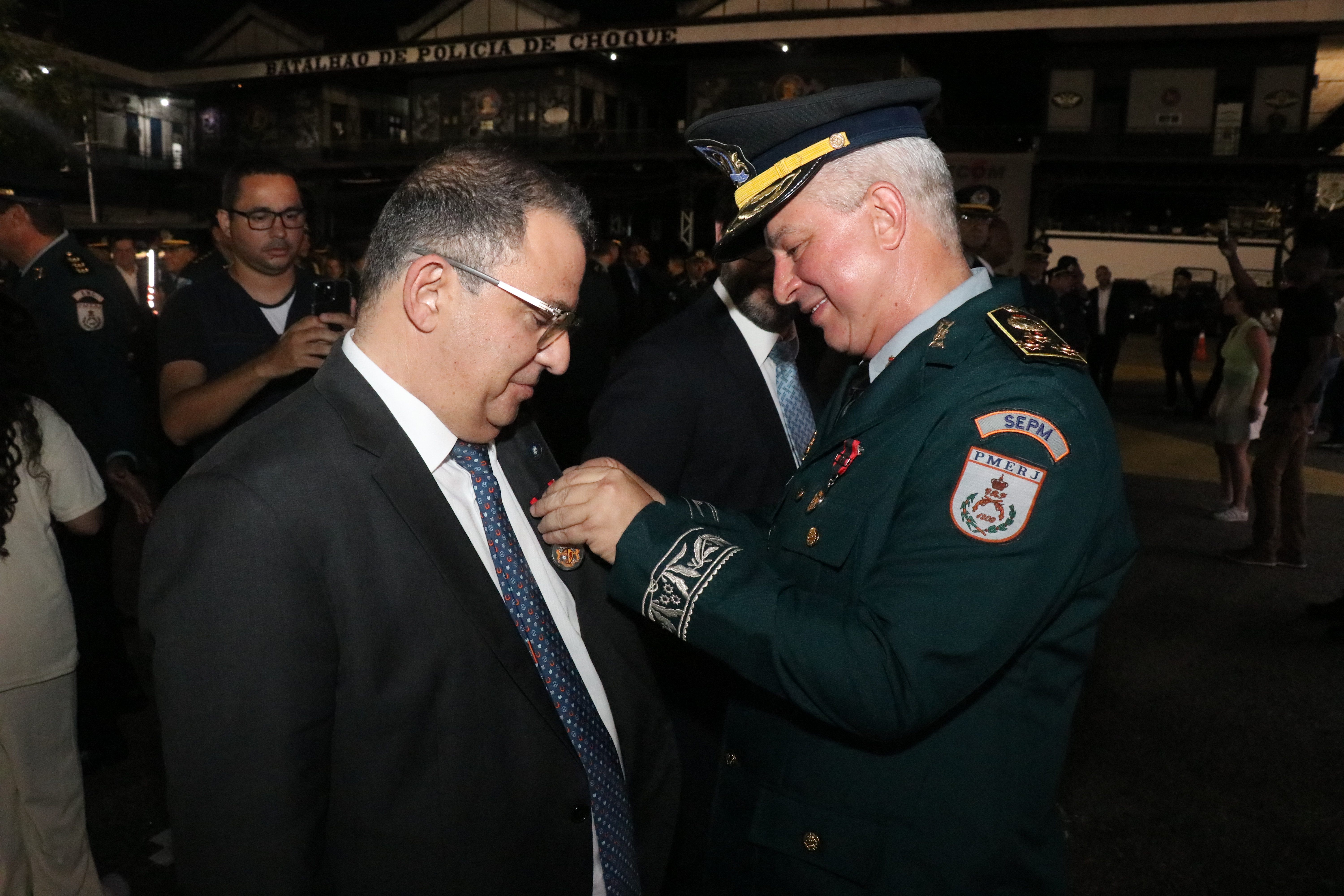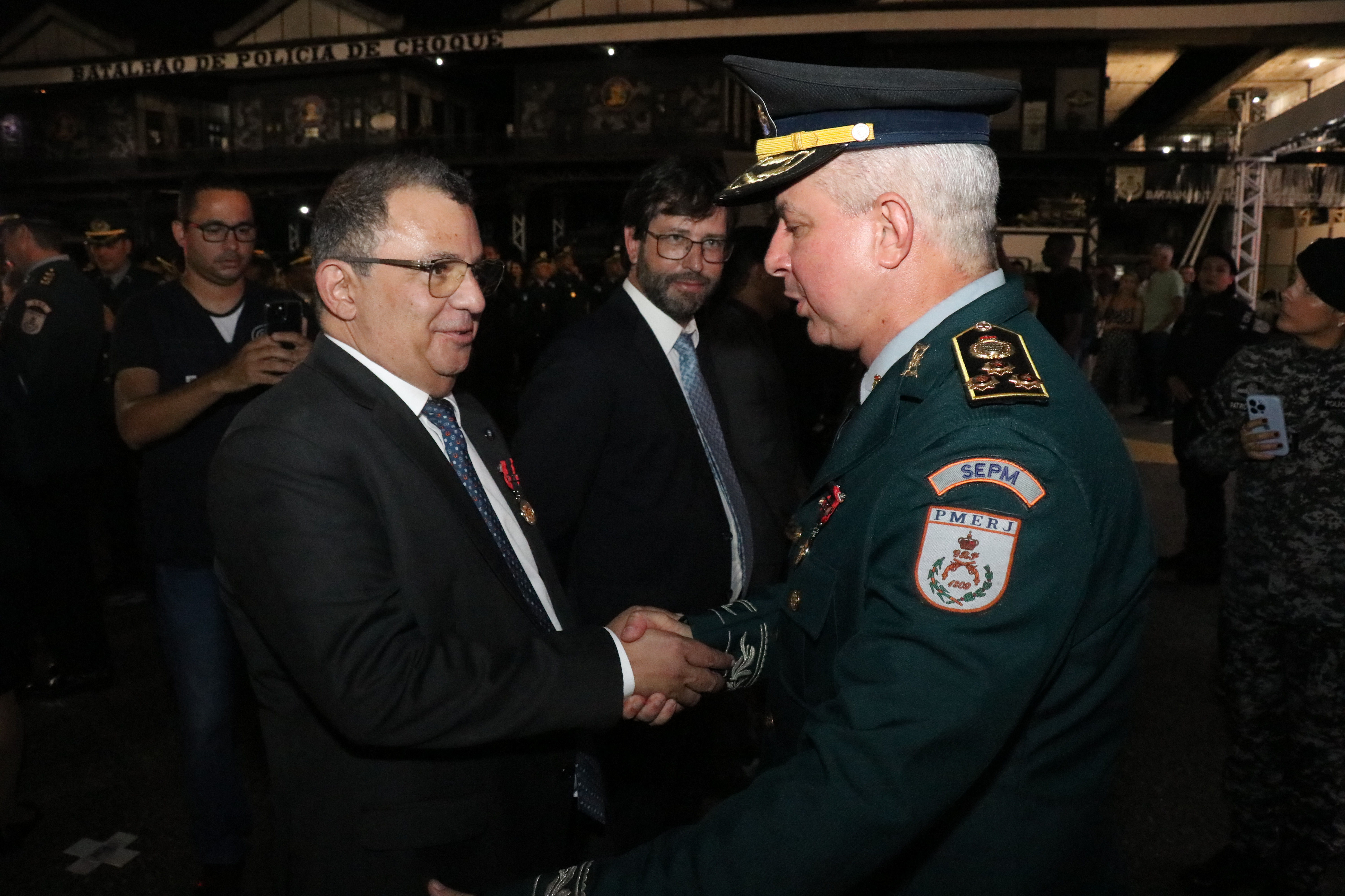 O Procurador-Geral do Estado, Renan Saad, e o Subprocurador-Geral do Estado, Joaquim Rohr, foram agraciados, nesta segunda-feira (22), com a Medalha Mérito Tático Policial Militar, concedida pelo Batalhão de Rondas Especiais e Controle de Multidão (RECOM). A cerimônia de entrega da honraria foi realizada na sede da unidade, na Cidade Nova.