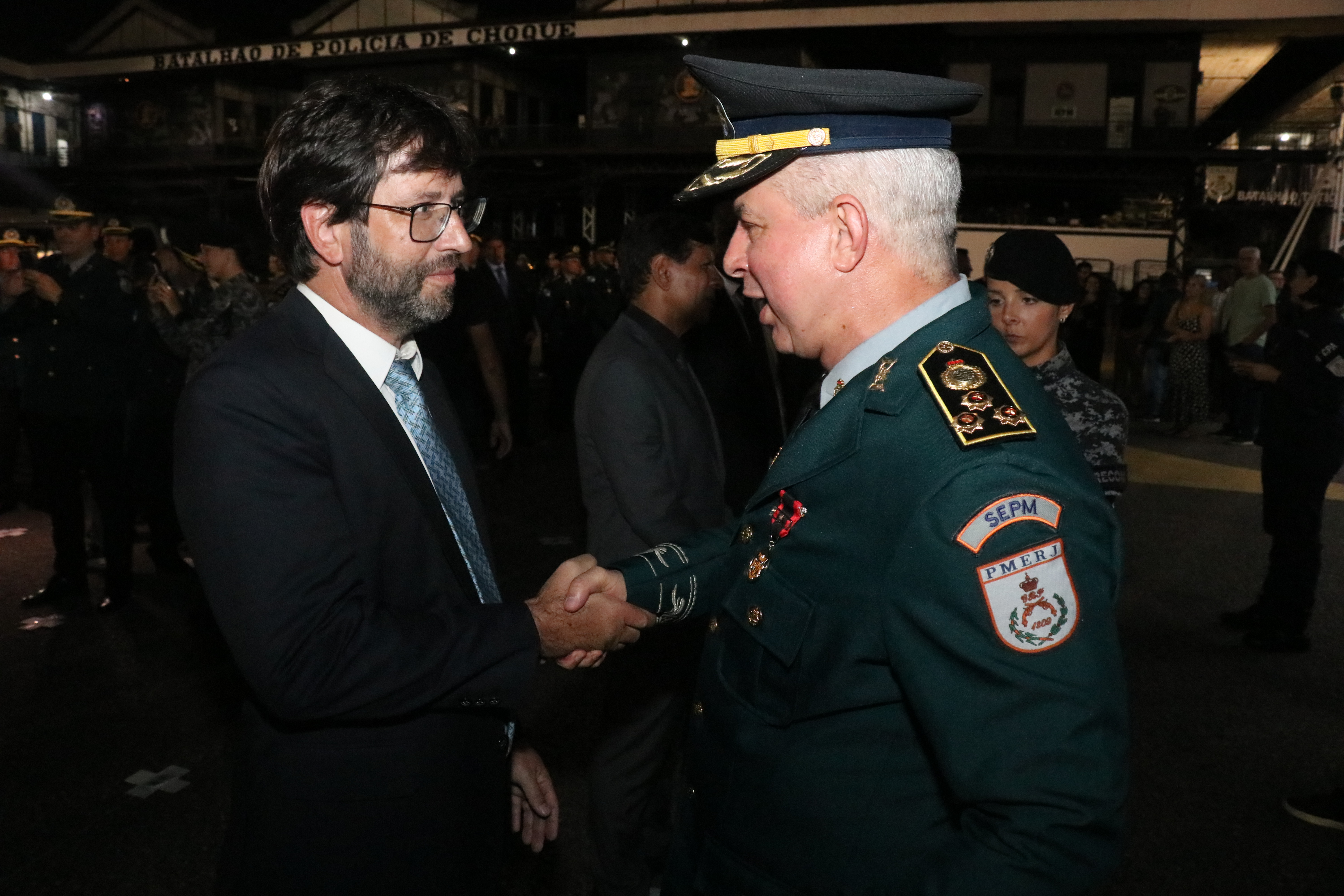 "Parabéns a toda a Polícia Militar e ao RECOM. Parabéns especial a todos os homenageados que estão aqui conosco para honrar essa unidade tão especial. É um momento histórico. A gente está próximo de entregar um grande arcabouço de investimentos para o RECOM, que, certamente, vai impactar nas ações do Batalhão nas ruas da cidade do Rio de Janeiro e dos municípios da Região Metropolitana do Estado", disse o Coronel Marcelo de Menezes.