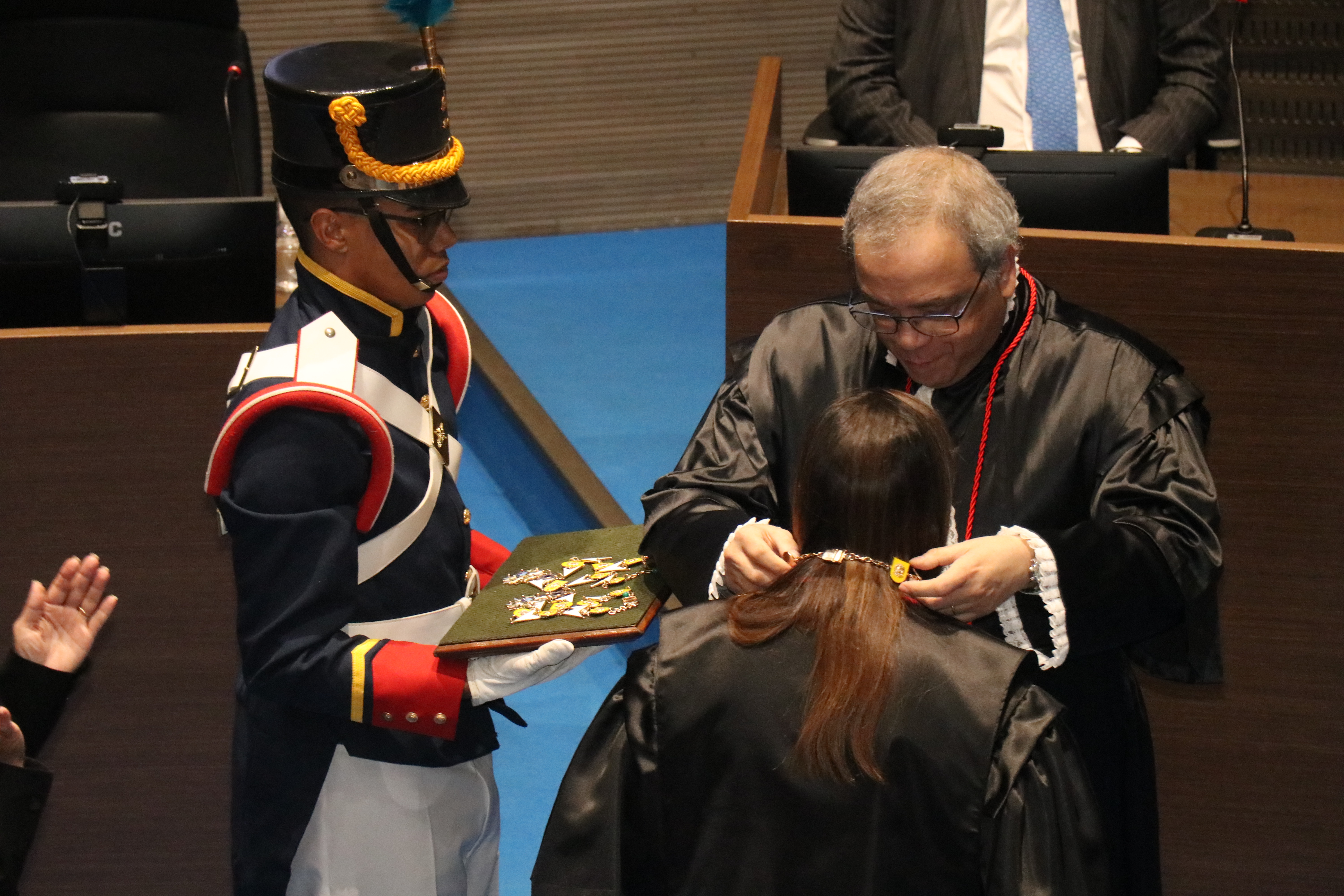 Na cerimônia, a Desembargadora Cláudia Franco Corrêa, em nome dos agraciados, destacou a importância da honraria da Corte. "É um privilégio, falo em meu nome e dos Desembargadores Rogério e Julio de Castilho, o recebimento da Medalha do Mérito Judiciário do TRF2. Partilhamos um sentimento unânime de gratidão. Isso para nós ecoa de forma muito importante. Receber tal honraria nos impulsiona, como agraciados, a renovar o juramento de lealdade a este Tribunal, à Constituição Federal e ao Estado Democrático de Direito", discursou.