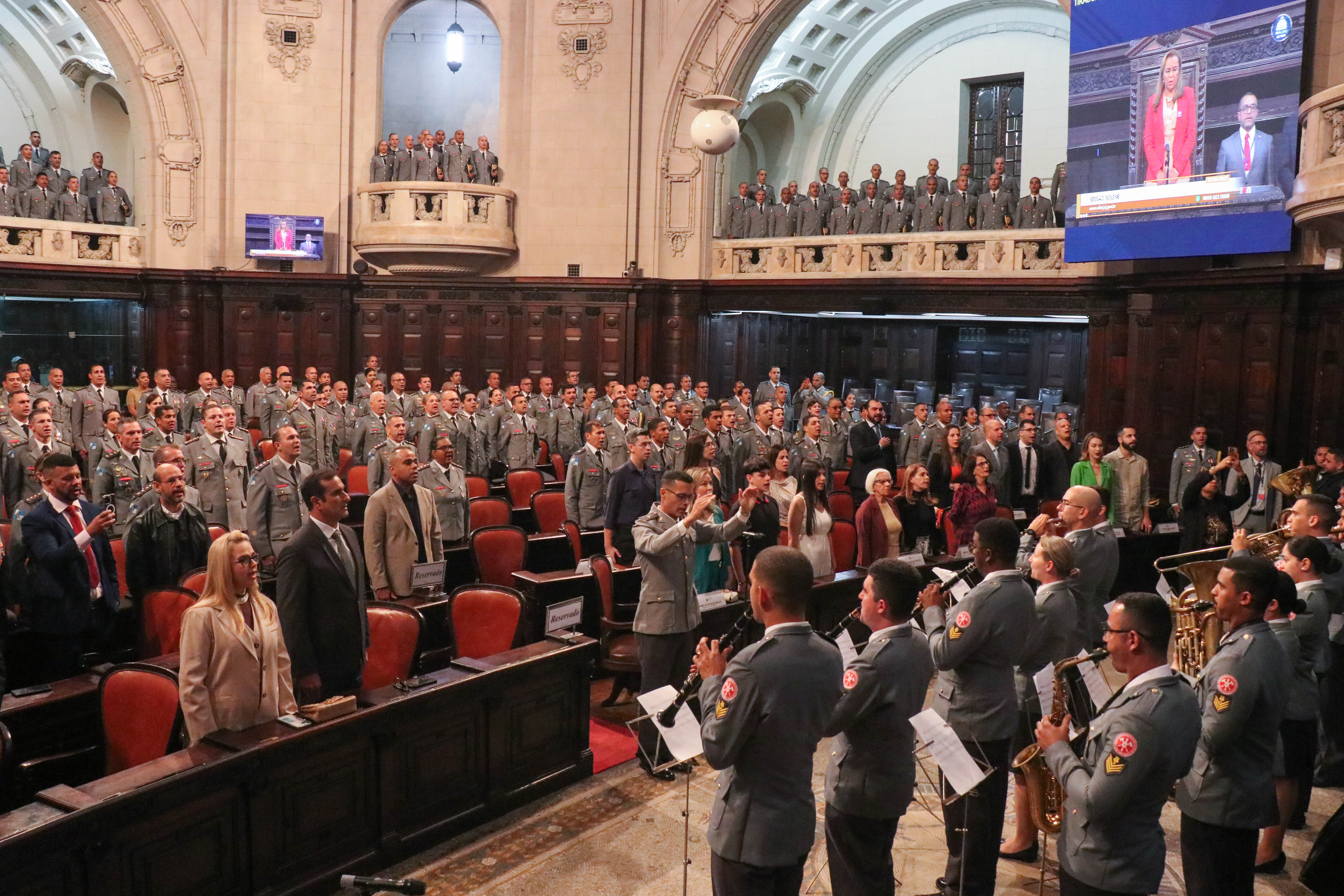 Os Procuradores Marcello Cinelli de Paula Freitas e Tania de Souza Elias representaram o Procurador-Geral do Estado do Rio de Janeiro, Renan Saad, na cerimônia de entrega da Medalha Tiradentes ao Secretário de Estado de Defesa Civil e Comandante-Geral do Corpo de Bombeiros (CBMERJ), Coronel Tarciso Antonio de Salles Junior. A solenidade foi realizada nesta quarta-feira (20) no Palácio Tiradentes.