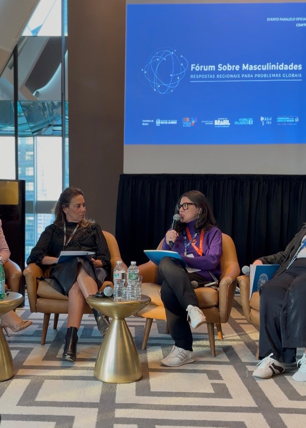 Durante a programação, Fernanda Mainier participou como palestrante do Fórum sobre Masculinidades, evento que reuniu importantes autoridades brasileiras em torno da reflexão sobre o papel dos homens na promoção da igualdade de gênero e no enfrentamento das violências contra as mulheres.
