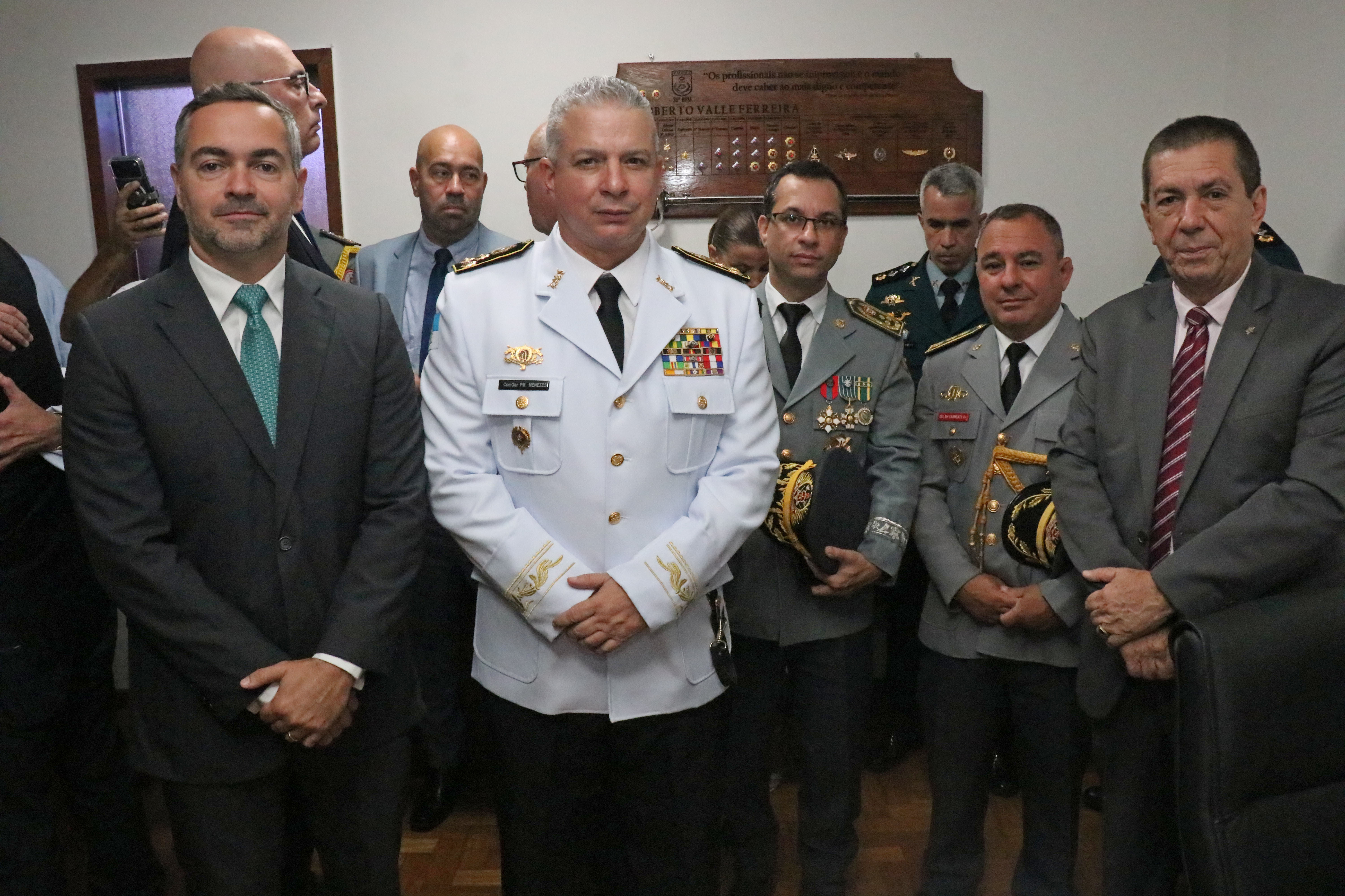 O Procurador Oziel Gomes Viana Junior, representando o Procurador-Geral do Estado do Rio de Janeiro, Renan Saad, participou nesta terça-feira (24), na Escola de Formação de Oficiais, da cerimônia de posse do Coronel Sylvio Ricardo Ciuffo Guerra como novo Secretário de Estado de Polícia Militar. Ele substitui o Coronel Marcelo de Menezes Nogueira.