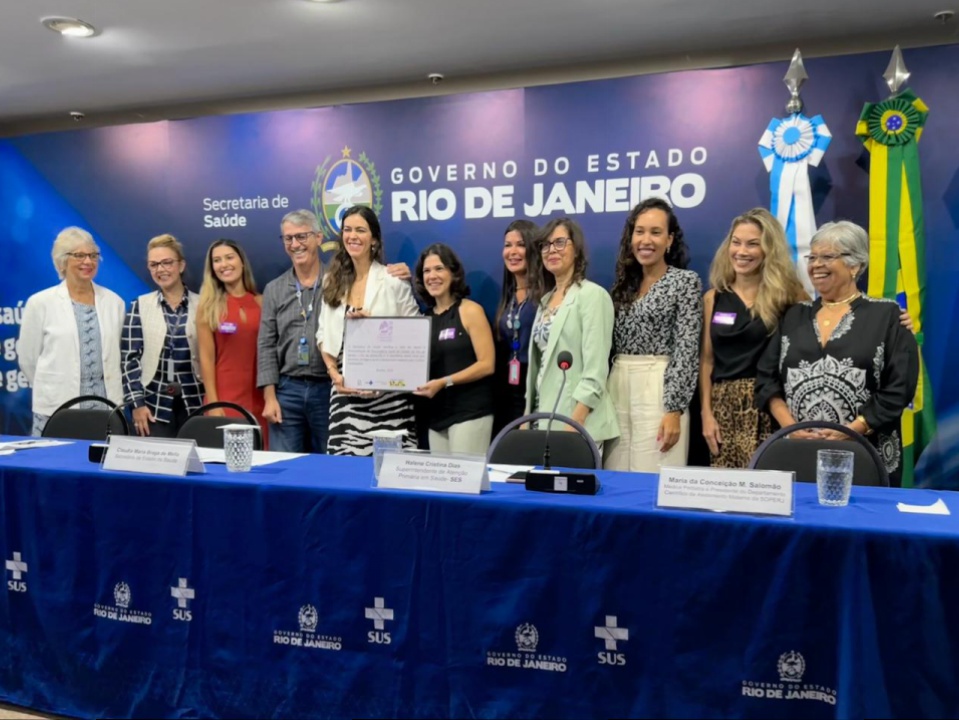 O evento de entrega da placa ocorreu nesta segunda-feira (5/2) no auditório da Secretaria de Estado de Saúde (SES/RJ) com a presença da Secretária de Estado de Saúde, Cláudia Maria Braga de Melo, da representante do Grupo de Trabalho Interinstitucional de Aleitamento Materno da SES, Cláudia Maria Braga de Melo, do Subsecretário de Vigilância e Atenção Primária à Saúde, Mário Sérgio Ribeiro, da Superintendente de Atenção Primária em Saúde, Halene Armada, e da médica pediatra e Presidente do Departamento Científico de Aleitamento Materno da SOPERJ, Maria da Conceição M. Salomão.