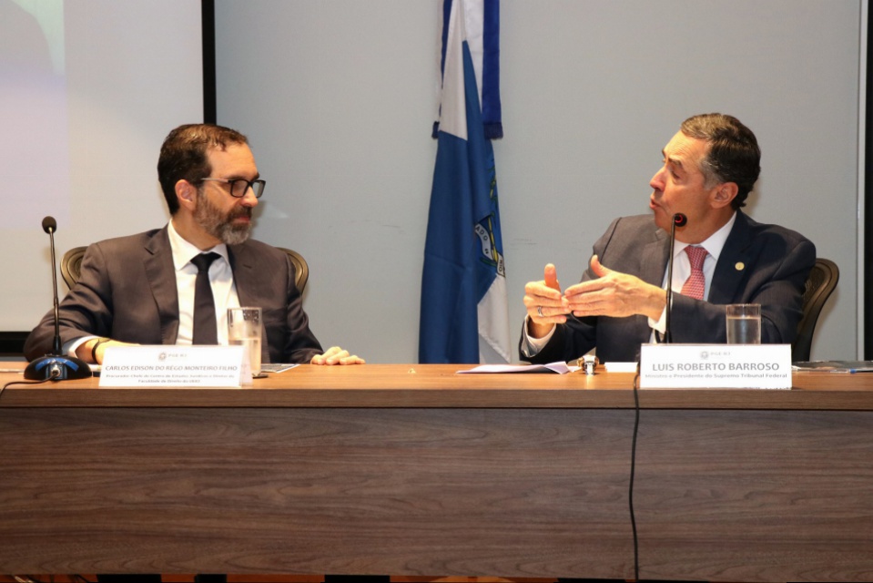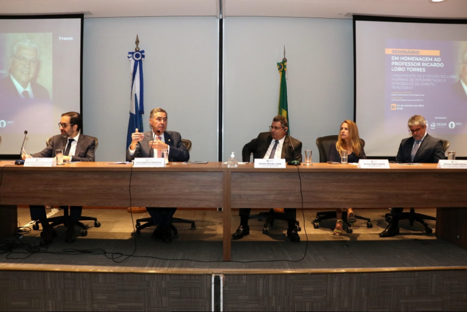 O Presidente do Supremo Tribunal Federal (STF), Ministro Luís Roberto Barroso, participou, nesta sexta-feira, 4 de outubro, do Seminário em Homenagem ao Professor Ricardo Lobo Torres. O evento foi organizado pelo Centro de Estudos Jurídicos (CEJUR) da Procuradoria Geral do Estado do Rio de Janeiro (PGE-RJ) e realizado no Auditório Machado Guimarães.