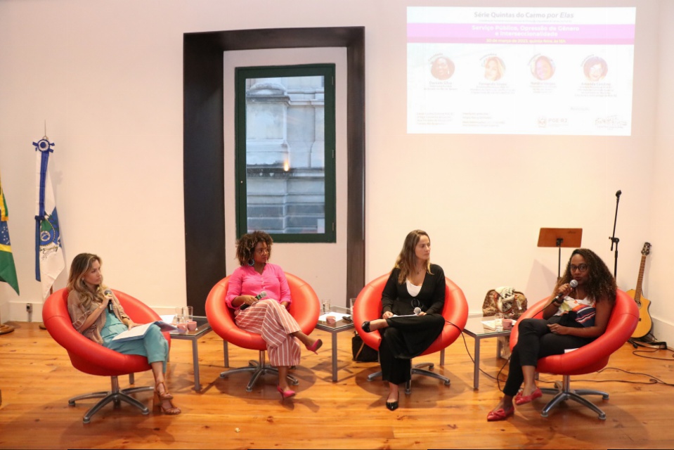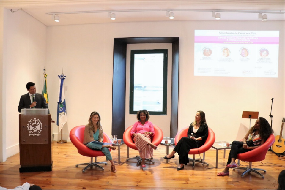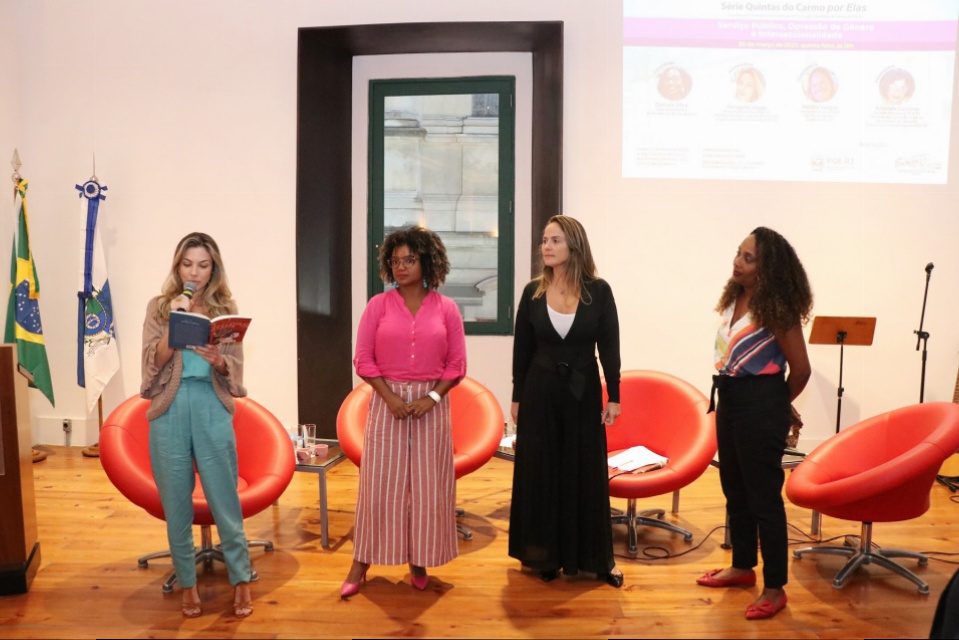 A Procuradoria Geral do Estado promoveu, nesta quinta-feira (30/03) mais um evento da Série Quintas do Carmo, dedicado ao tema “Serviço Público, Opressão de Gênero e Interseccionalidade”, com a participação da Defensora Pública do Estado, Daniele Silva, da Fernanda Sousa, Analista Processual da PGE, da Procuradora do Estado Natália Vargas, da PG-07, e de Amanda Carolino, Analista Processual da PGE.
