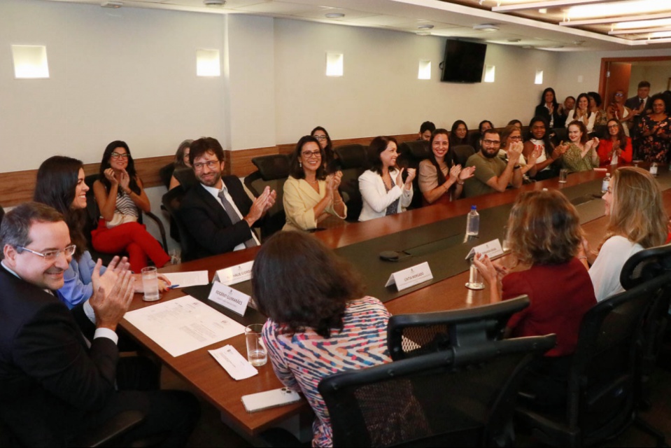 Durante a cerimônia, a Procuradora Fernanda Mainier tomou posse como Presidente da Comissão ao lado das novas Vices-Presidentes, a Procuradora Cintia Morgado e a Analista Processual Fernanda Sousa, para um mandato de 3 anos. Em seu discurso, ela agradeceu a confiança do Gabinete, dos membros da Comissão e assegurou que “o trabalho seguirá sendo pautado pelo acolhimento plural, na continuidade do que conquistamos até aqui e contando com o apoio de todas e de todos nos desafios que ainda temos para a promoção da igualdade de gênero no âmbito da PGE”, ressaltou a nova Presidente da Comissão.