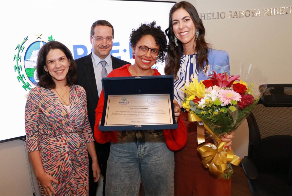 A Procuradoria Geral do Estado do Rio de Janeiro (PGE-RJ) homenageou, nesta quarta-feira (10/04) a Procuradora do Estado Nathalie Giodano, como a primeira presidente da Comissão para a Promoção da Igualdade de Gênero em mandato exercido entre abril de 2021 a março de 2024.