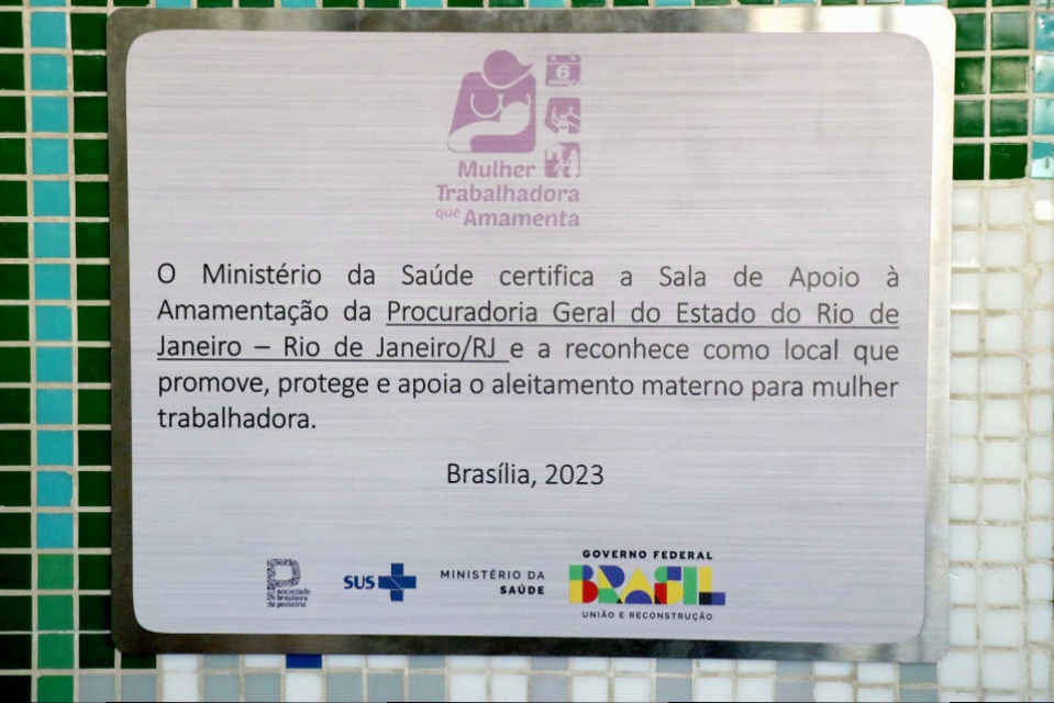 A Procuradoria Geral do Estado do Rio de Janeiro (PGE-RJ) inaugurou, nesta sexta-feira (8/3), Dia Internacional da Luta pelos Direitos das Mulheres, a placa de certificação da Sala de Apoio à Amamentação da PGE-RJ.