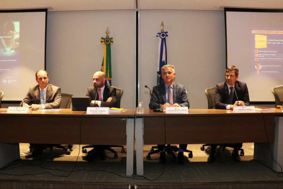 A Procuradoria Geral do Estado do Rio de Janeiro (PGE-RJ) promoveu, nesta terça-feira (18/06), o debate sobre o livro “Contratos Administrativos na Lei de Licitações”, de autoria do Procurador do Estado Flávio Amaral Garcia e do Professor da Universidade Federal do Paraná, Egon Bockmann Moreira.