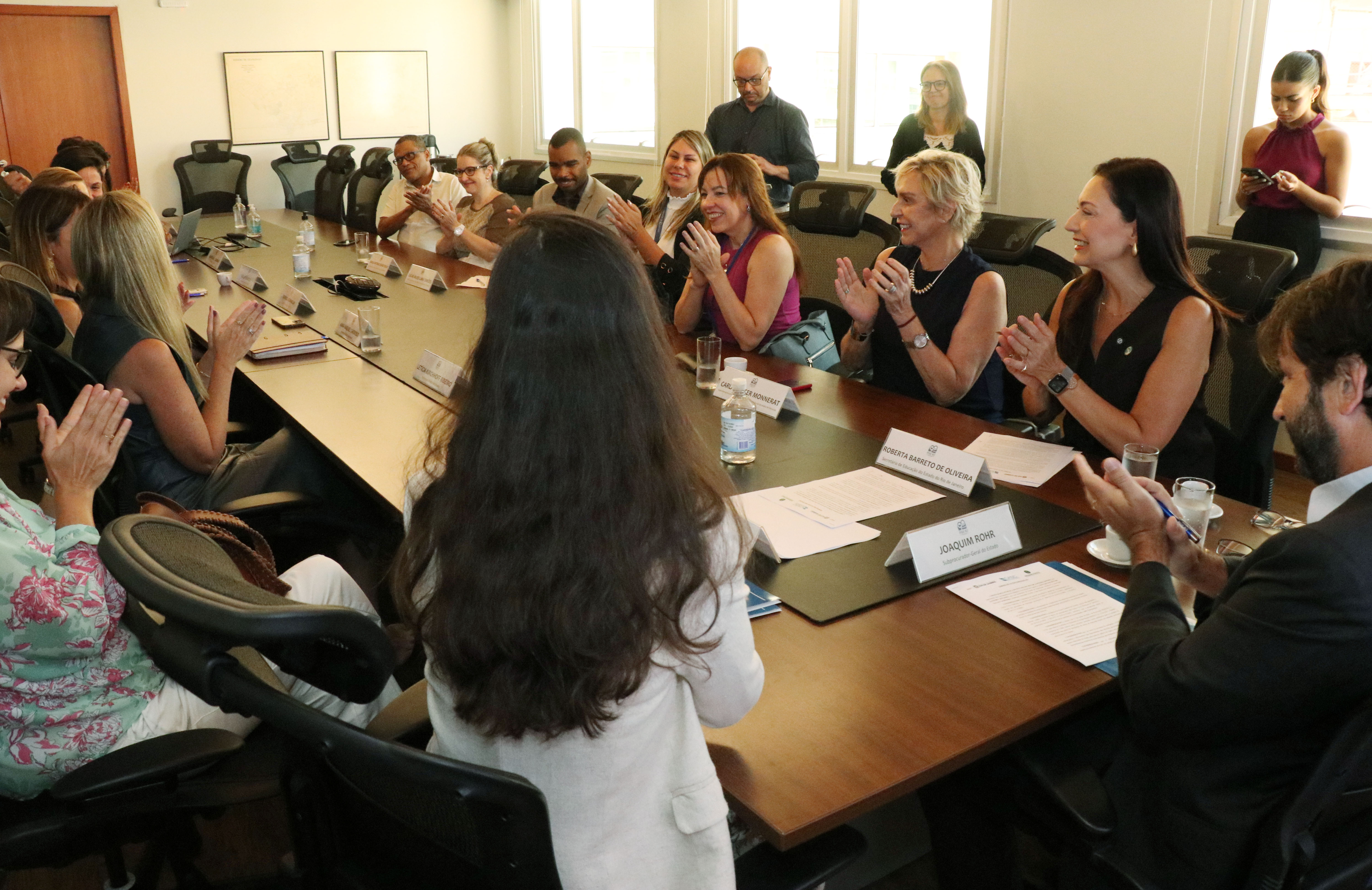 "Todos nós enquanto poder público temos a obrigação de fazer com que os serviços públicos cheguem à ponta. Temos trabalhado todos os dias para isso. Quero agradecer ao Dr. Renan Saad por essa intensa atenção que tem dado à Educação do Estado do Rio de Janeiro. Agradeço a todos. Colocar um menino na escola parece fácil. Porém, isso demanda não só a infraestrutura, mas também daquele pátrio poder que hoje é um dos mais ausentes no Estado, que é a família. Lutamos o tempo todo pela permanência desse menino na escola. E a união entre os Poderes, seja aqui na CASC, seja nas nossas reuniões de planejamento, é fundamental. Nos comprometemos em cumprir esse acordo e já estamos cumprindo", afirmou Roberta Barreto de Oliveira.
