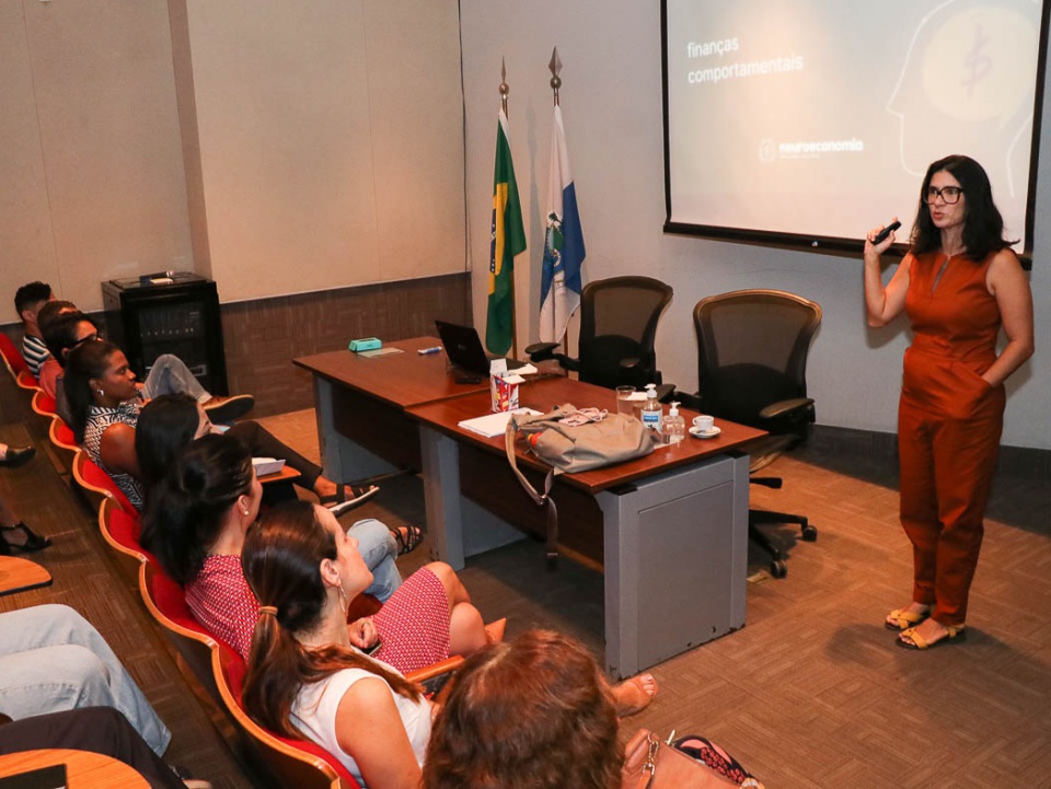 A Procuradoria Geral do Estado do Rio de Janeiro (PGE-RJ) recebeu, nesta quarta-feira (03/04), a Instrutora Carol Velloso, advogada especializada em Finanças Comportamentais pela Universidade de Chicago, e fundadora da Neuro Economia Educação, para ministrar a palestra Educação Financeira para os servidores da PGE-RJ.