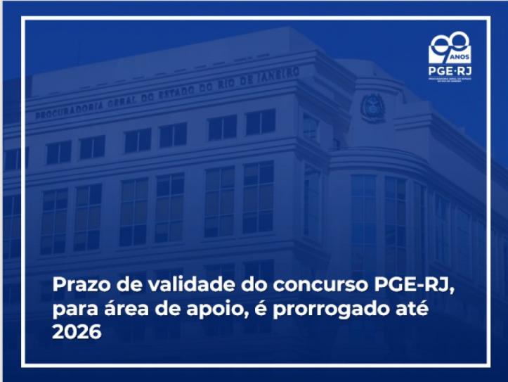 O Concurso para o Quadro de Apoio da Procuradoria Geral do Estado do Rio de Janeiro (PGE-RJ) teve o prazo de validade prorrogado por mais dois anos para cargos dos níveis médio e superior, tornando-o válido até 2026. Durante esse prazo, o órgão poderá convocar mais aprovados a depender do surgimento de novas vagas decorrentes de aposentadoria ou exoneração.