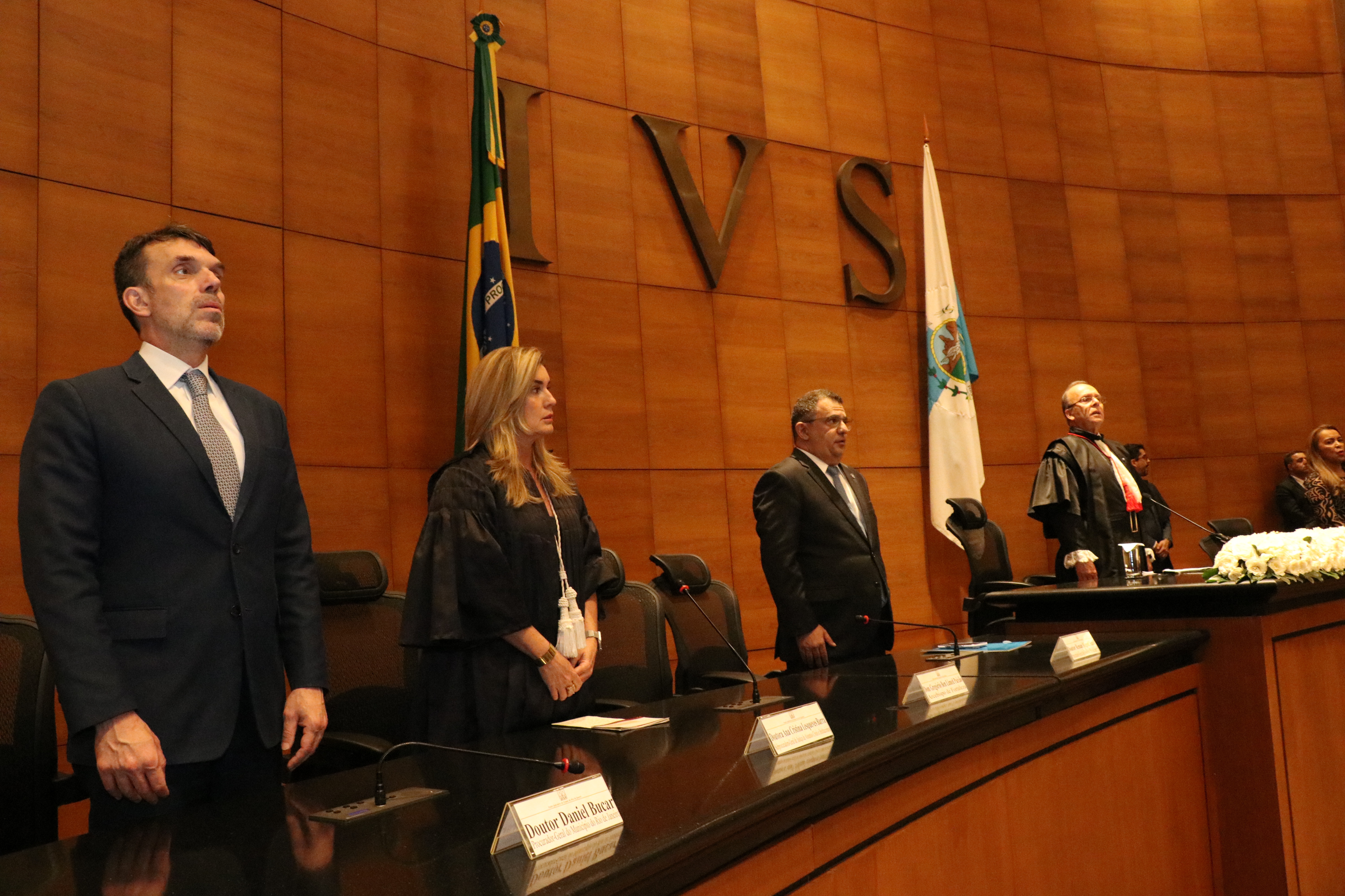 "Como é bom ter novas mentes, novos julgadores aqui nessa casa. O que esperamos de vocês é trazer o novo para o Segundo Grau. Nossa Justiça é a que mais repercute no Brasil. Tudo que acontece neste Tribunal, repercute no Brasil, embora seja o segundo Tribunal em tamanho. É do Rio que saem novas ideias, novas correntes. Deixei para encerrar o ano do Judiciário com uma grande festa e vocês fazem parte disso. Tudo foi planejado por mim para encerrarmos o ano Judiciário com a esperança que, a partir da posse de vocês, nós teremos um Judiciário melhor, inovador, moderno. Sejam muito bem-vindos e tenho certeza que serão muito bem acolhidos", disse o presidente do TJRJ.