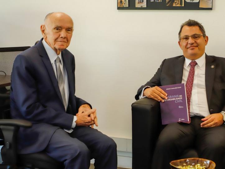 O Desembargador aposentado Sérgio Cavalieri Filho presenteou o Procurador-Geral do Estado com o seu livro “Programa de Responsabilidade Civil”. A obra traz os variados ângulos da responsabilidade civil e resume as mais avançadas e atuais posições sobre diversos temas, com ênfase no estudo da culpa e do nexo causal.