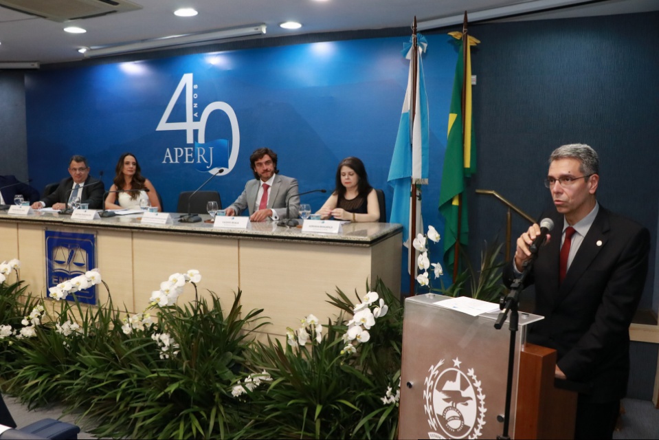 O evento foi realizado no auditório da Escola da Magistratura do Estado do Rio de Janeiro (Emerj), na Rua Dom Manoel 25, antiga sede da Procuradoria, com a presença do presidente da OAB/RJ, Luciano Bandeira, do Diretor-Geral da Emerj, Desembargador Marco Aurélio Bezerra de Melo, do Presidente do TRF da 2ª Região, Desembargador Guilherme Calmon, do Presidente da Associação Nacional dos Procuradores dos Estados e do DF (Anape), Vicente Braga, e da ex-Presidente da Aperj, Procuradora Adriana Bragança, que formaram a mesa diretora da cerimônia.