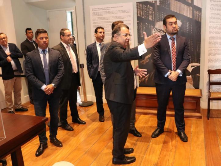 O governador visitou as instalações do Centro Cultural, onde conheceu a biblioteca Octavio Tarquinio de Sousa e Lucia Miguel Pereira, que recebeu recentemente a doação do retrato de Octavio pintado por Candido Portinari.